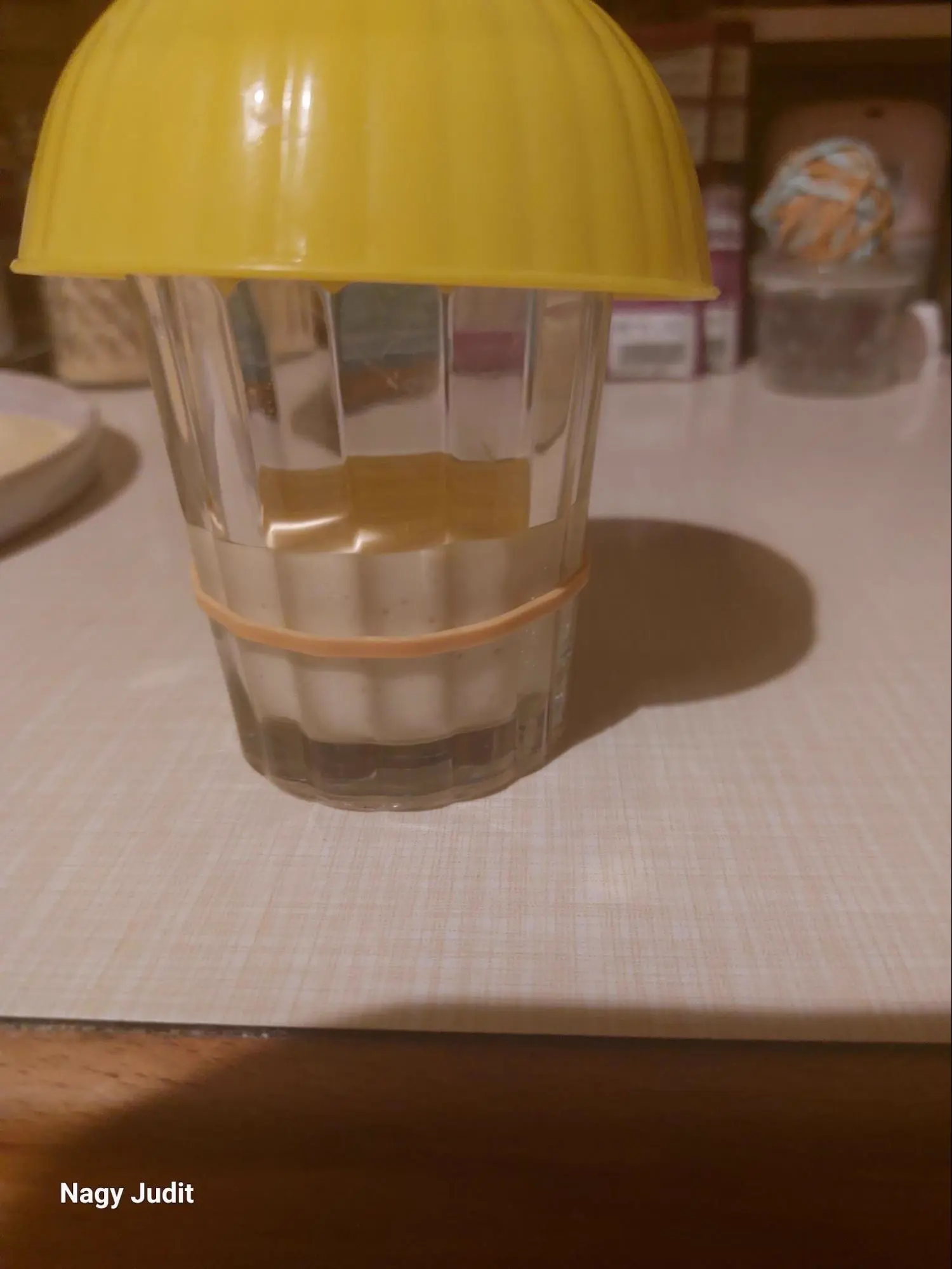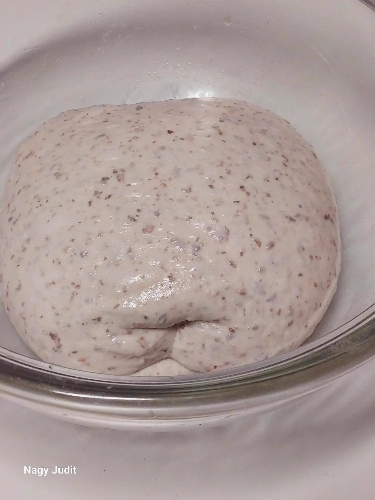 Nem etetem csak összekevertem 2 óra múlva szépen vissza nőtt, de nagyon folyós lett igy vizet kevesebbet adtam neki mivel még nagyon kis fiatalka nem mertem a liszten emelni nehogy visszafogjam.