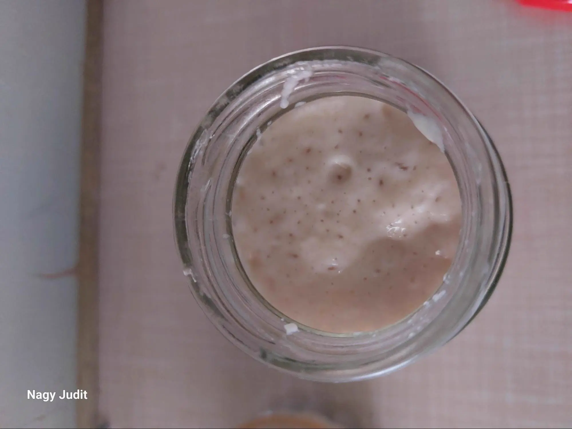 Reggel megint nézegetett az üvegből, de már legalább nem futott ki, legalább is nem annyira mint este. Habos még mindig, nem szálas a kovász. Kisebb arányban etetek.