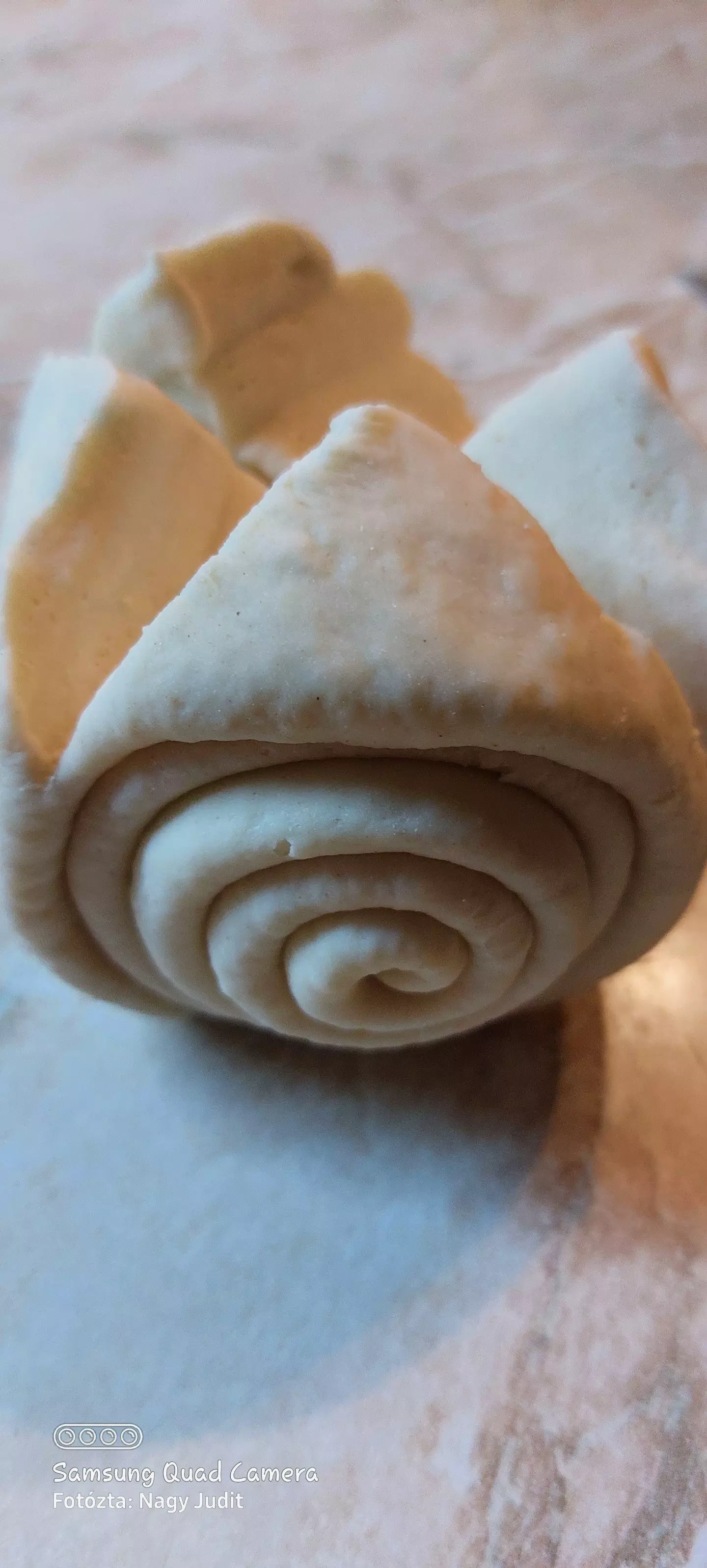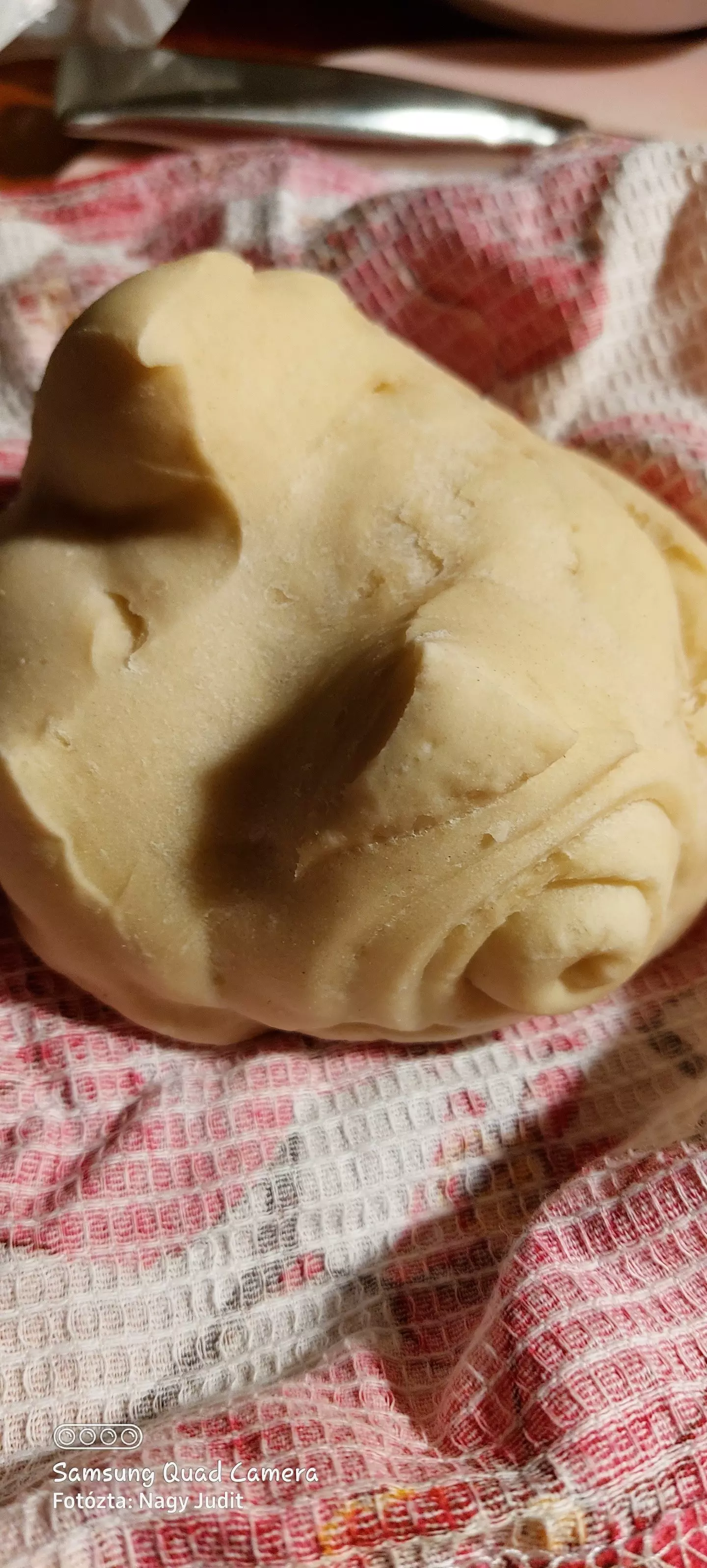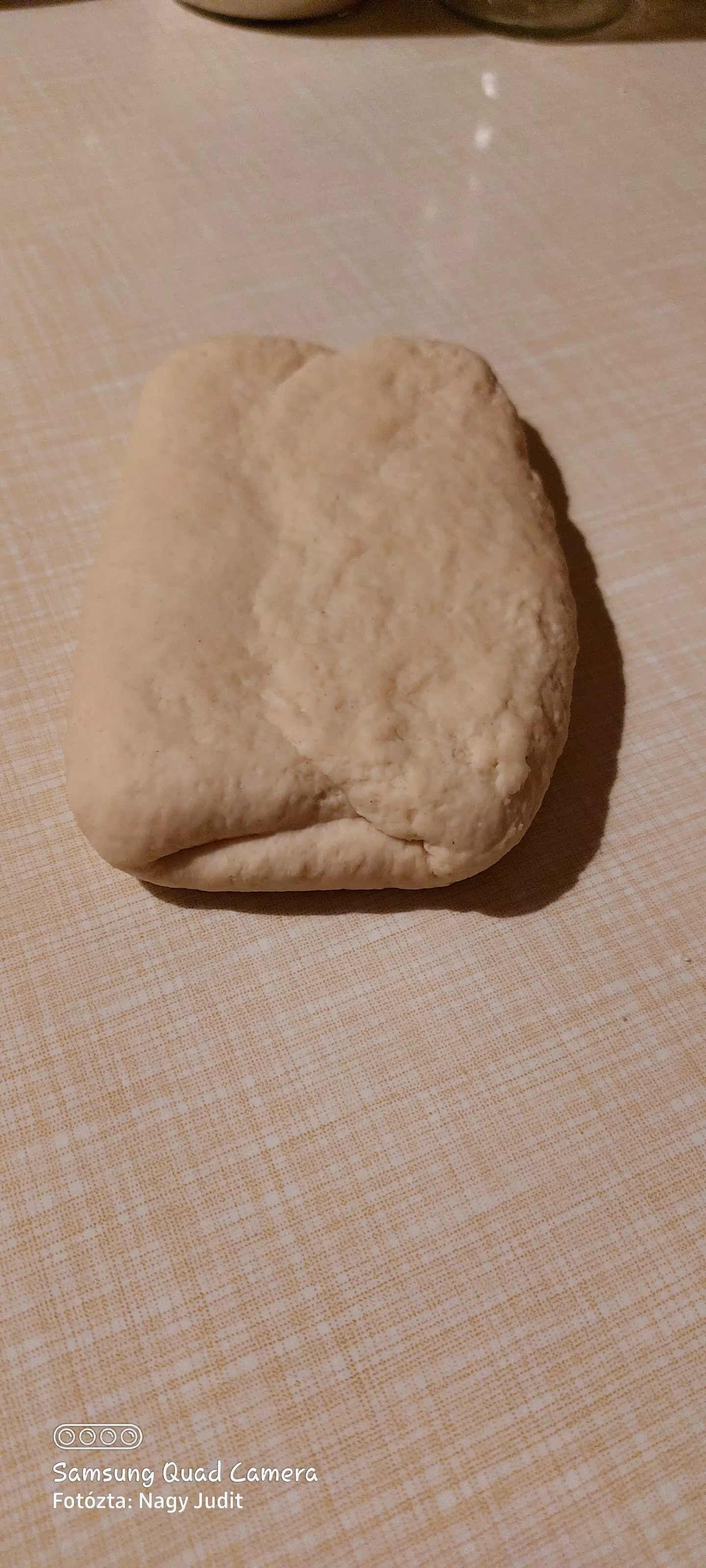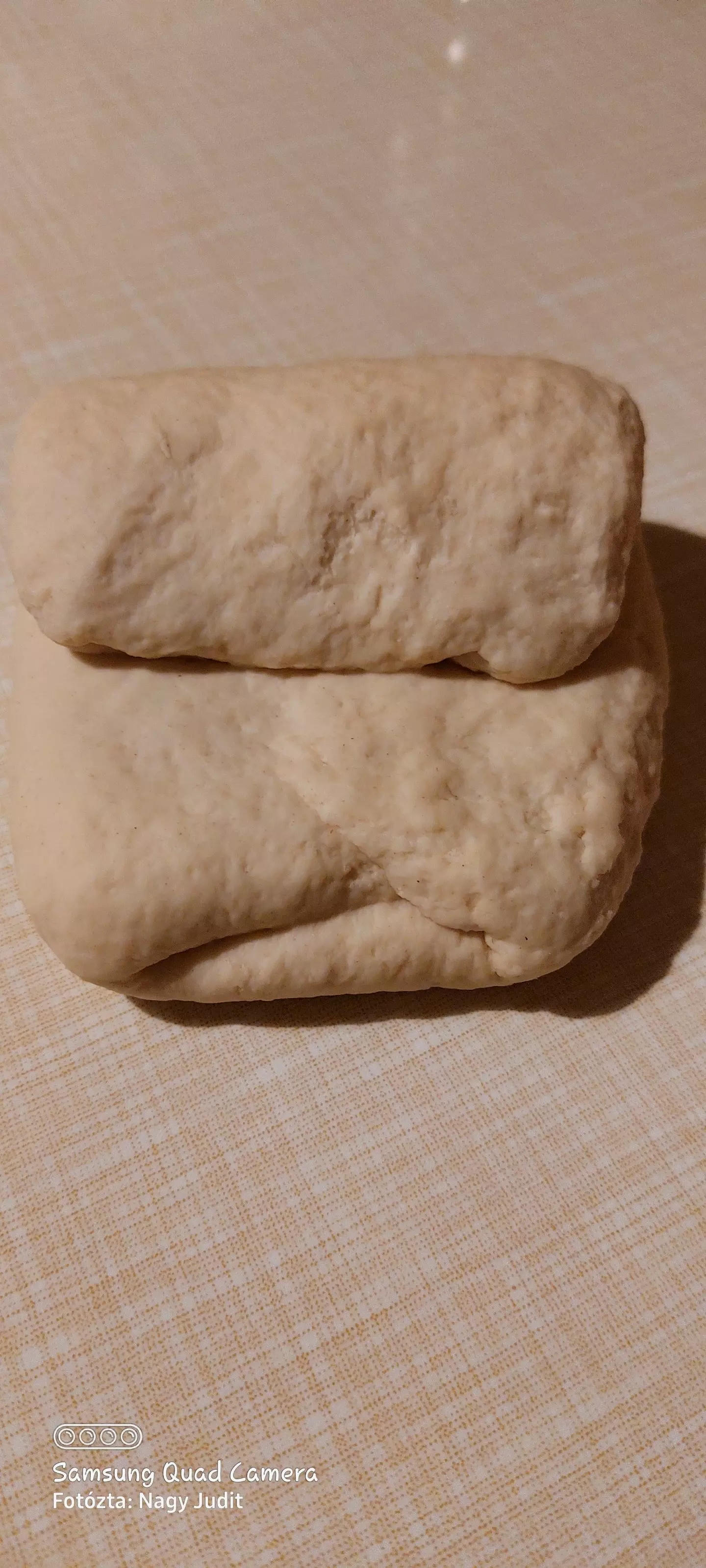 Ezt a hajtást nyujtást 3x ismétlem mire szép sima lesz a tészta.