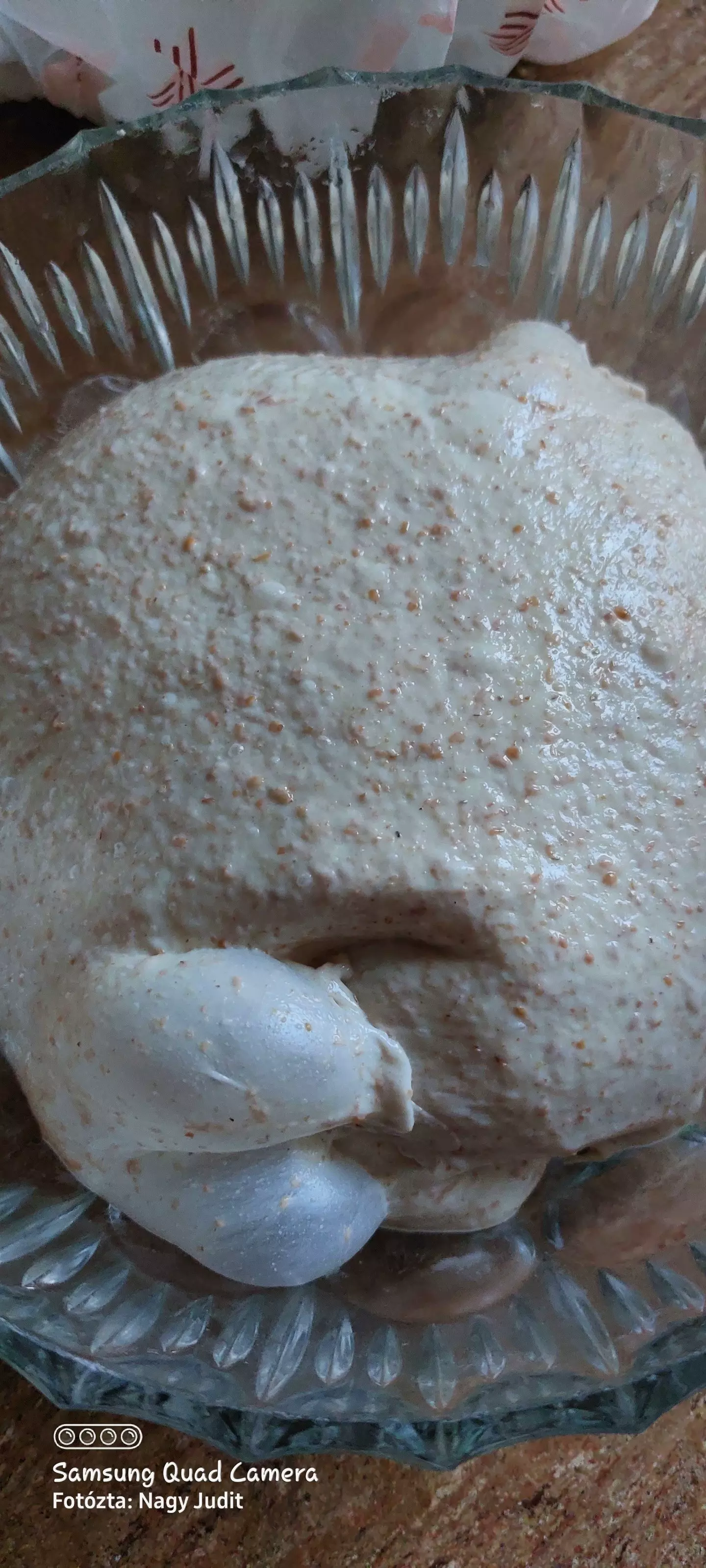 9. etetésnél a maradék egyrészét feletettem sütéshez de akkor elmaradt igy most azt is feletettem sütéshez 1,5 óra mulva gyönyörű volt de nem tudtam sütni így betettem a hűtőbe.