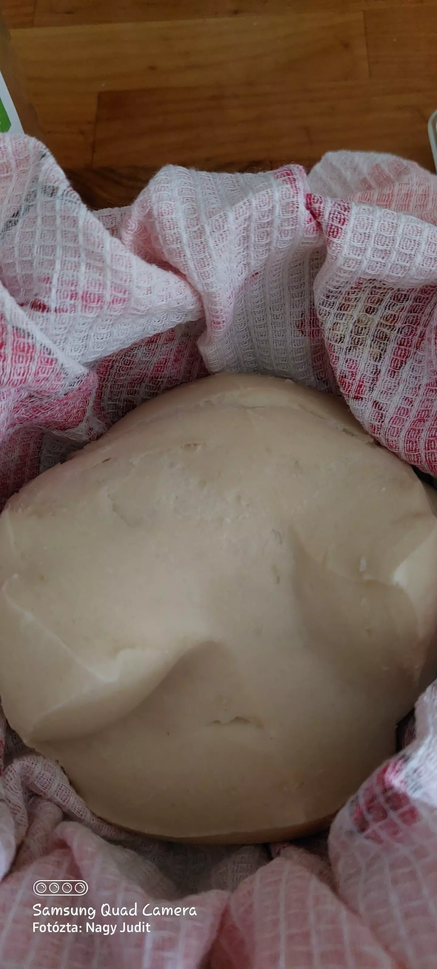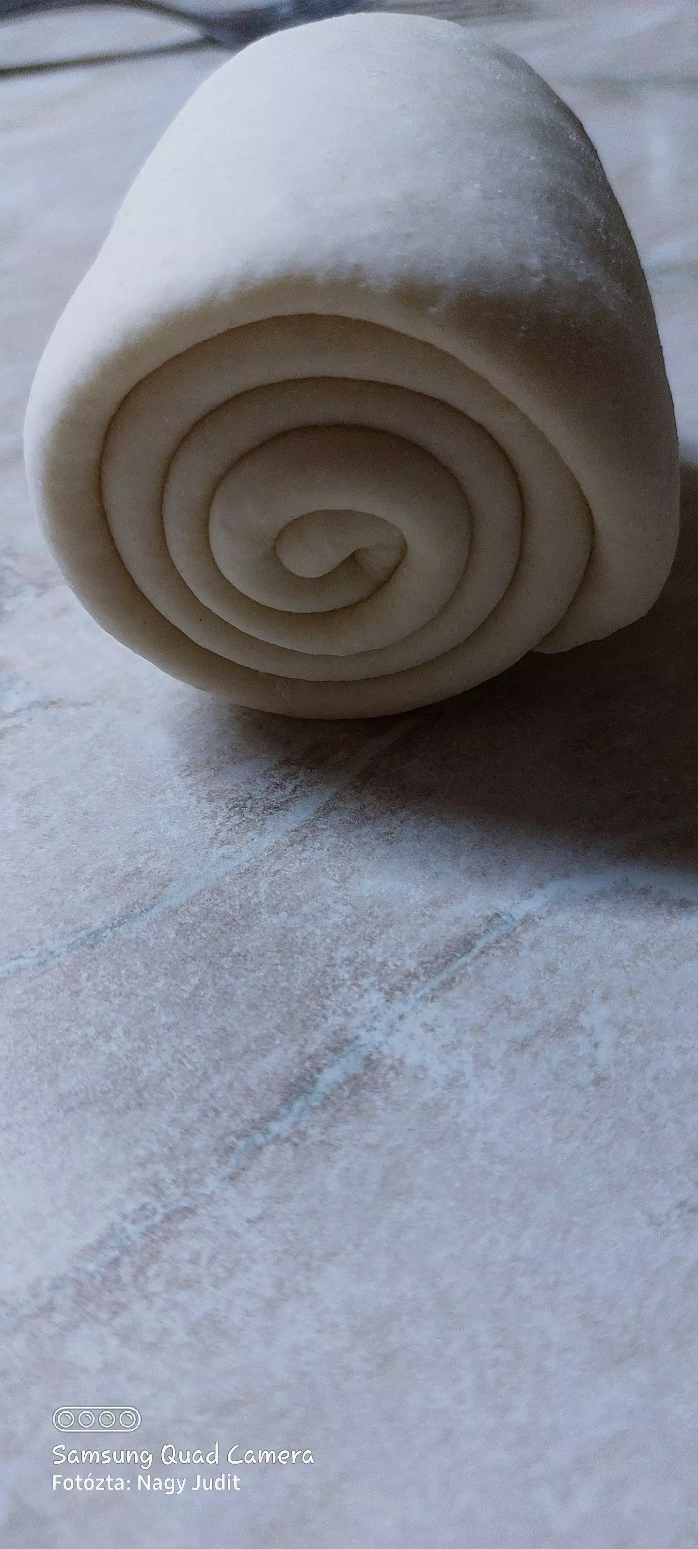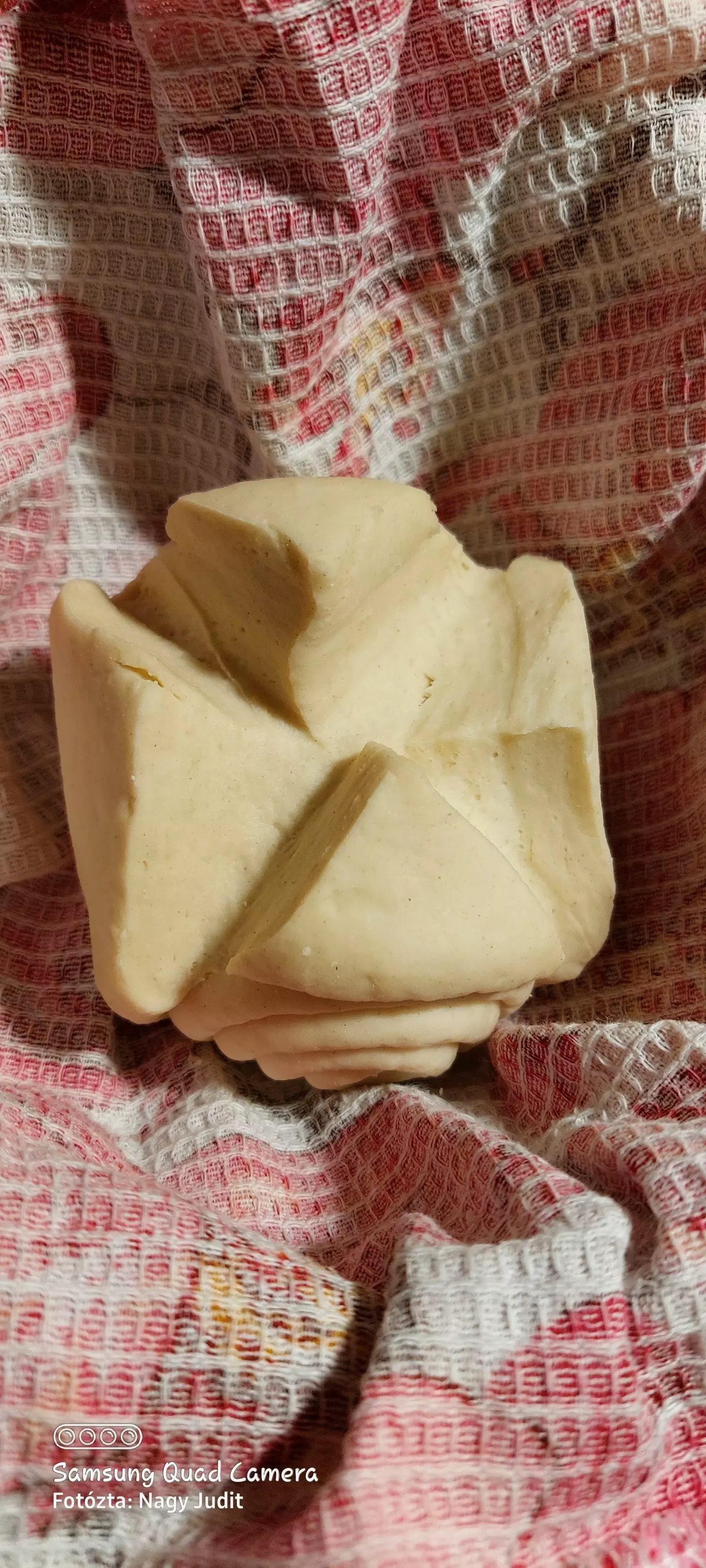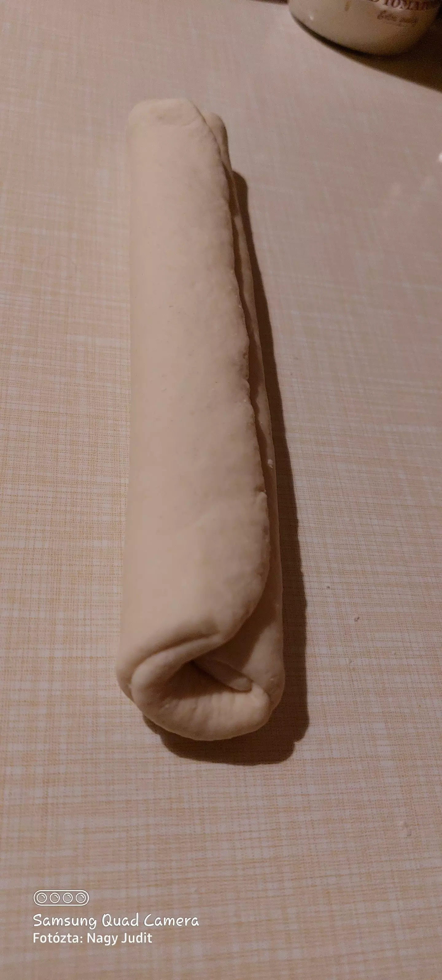 Ez a végső nyujtás ezután tekerem fel és vágom be majd megy a tálba konyharuhába csomagolva.
