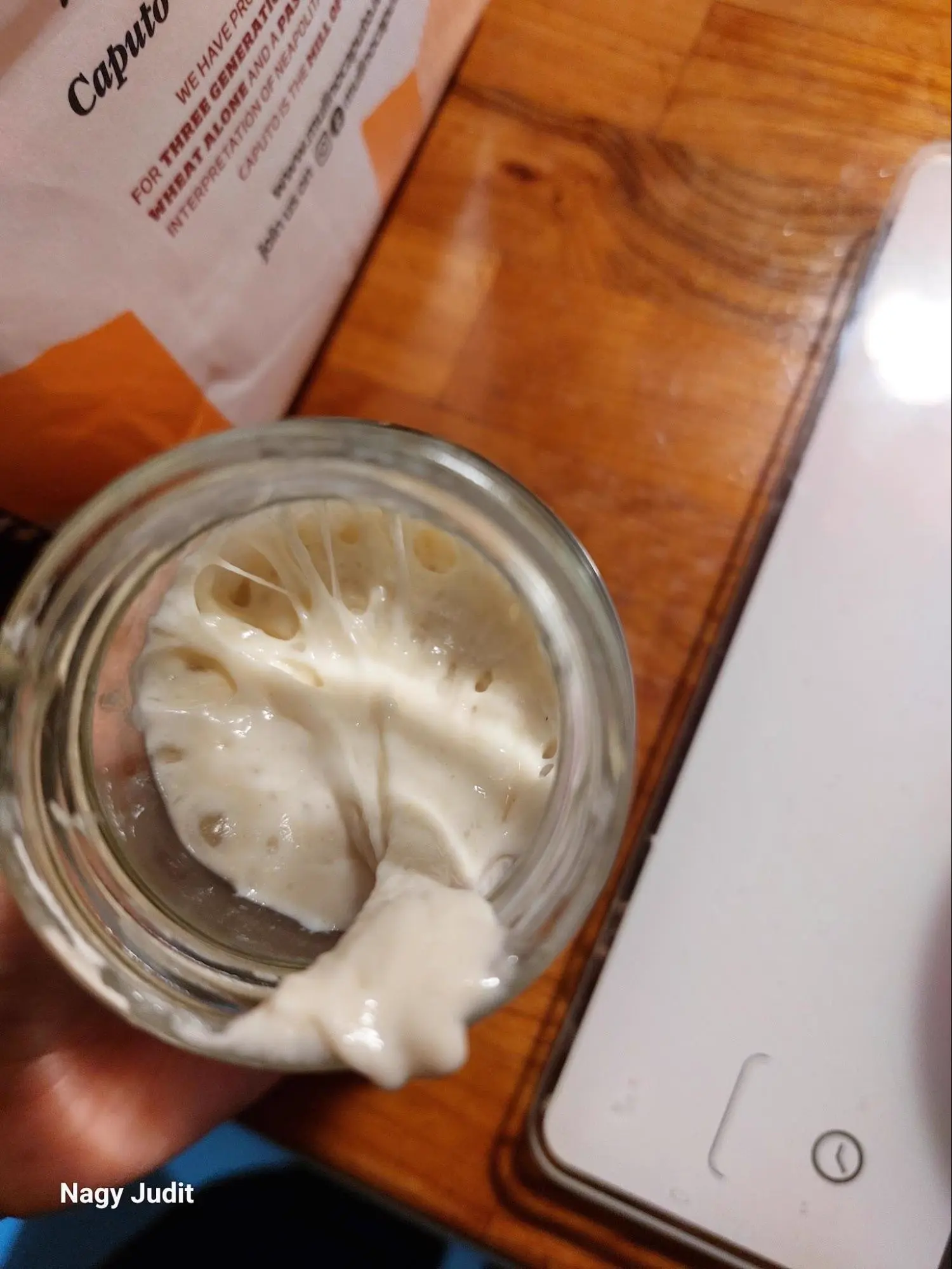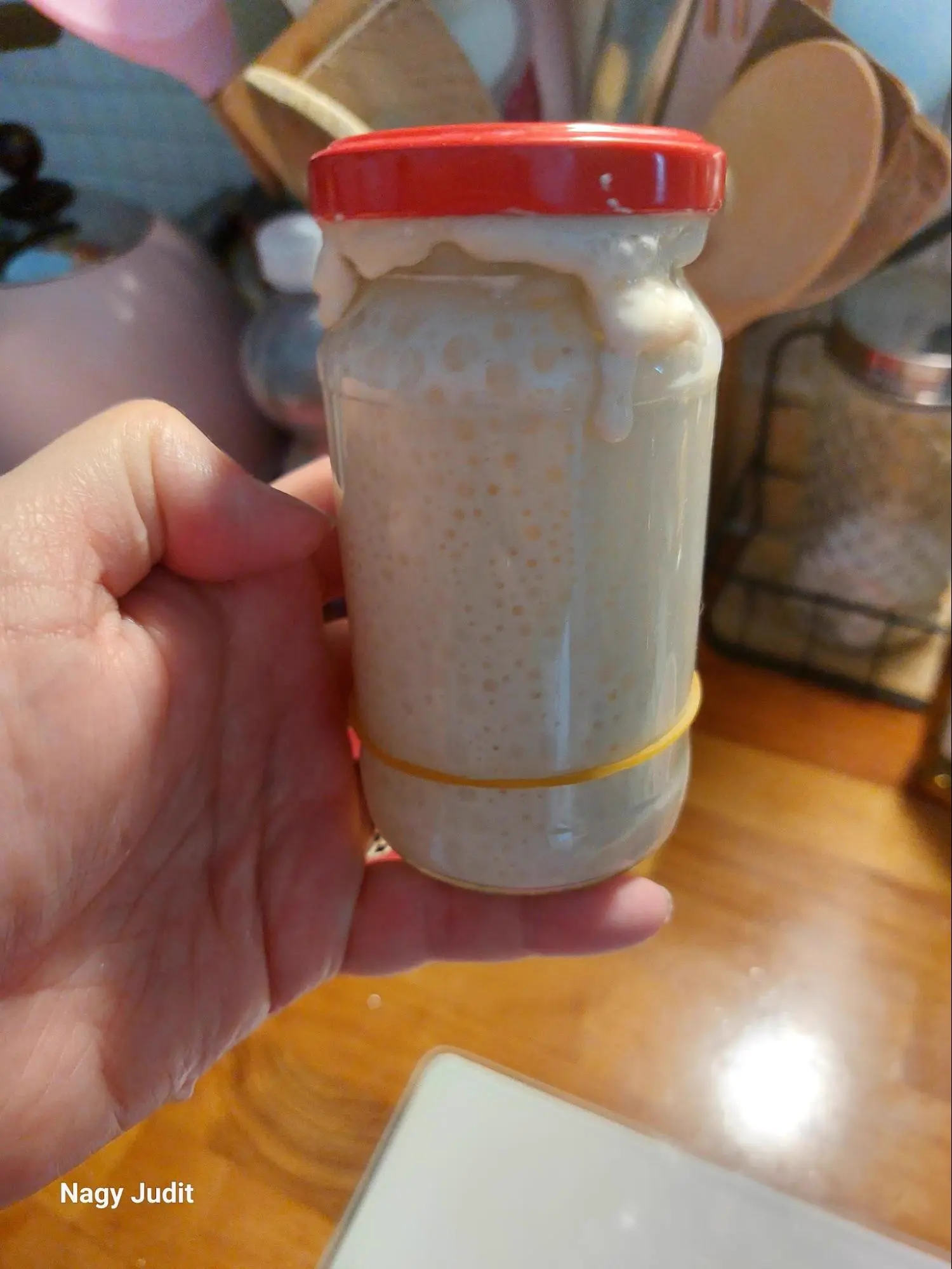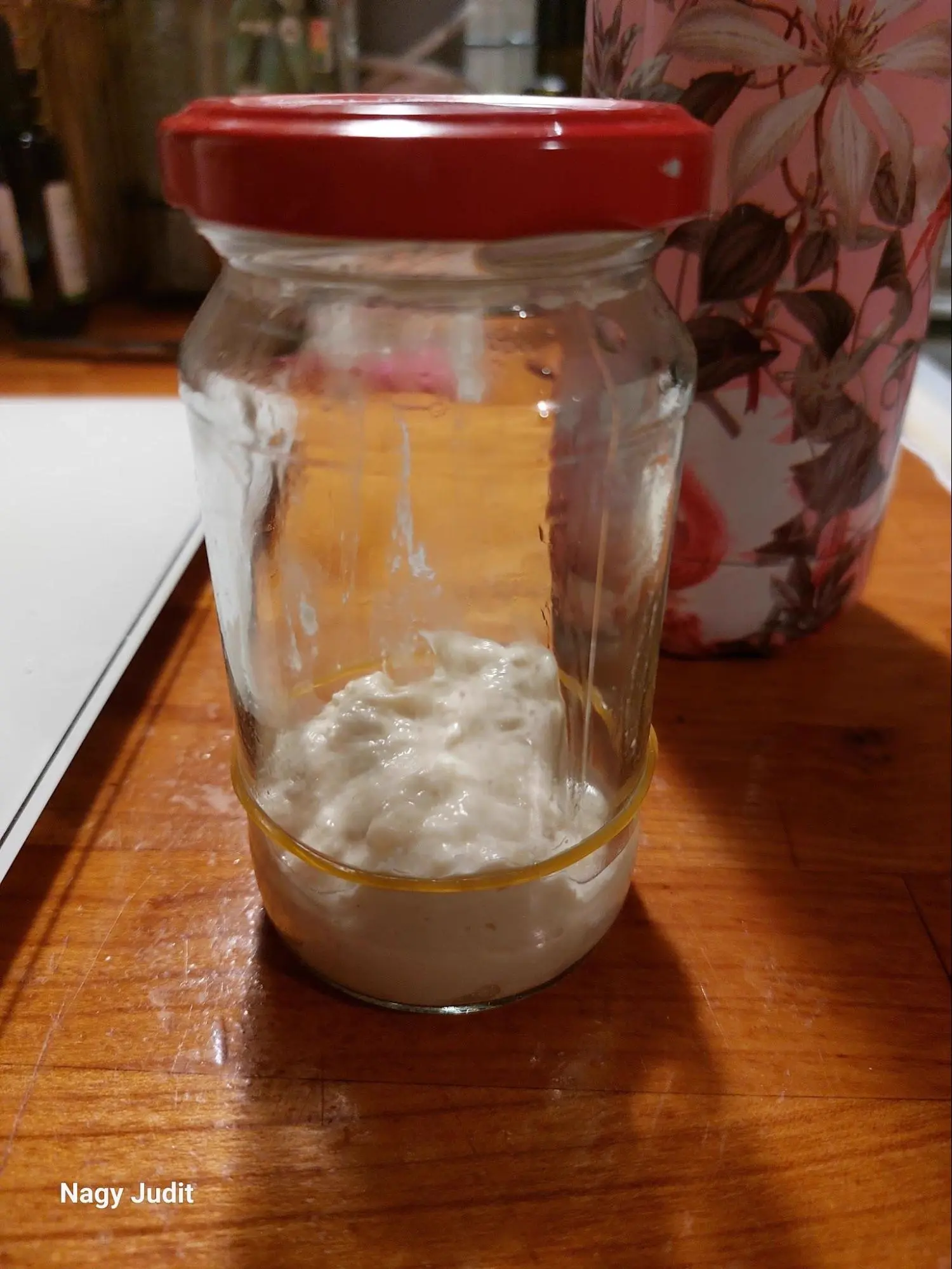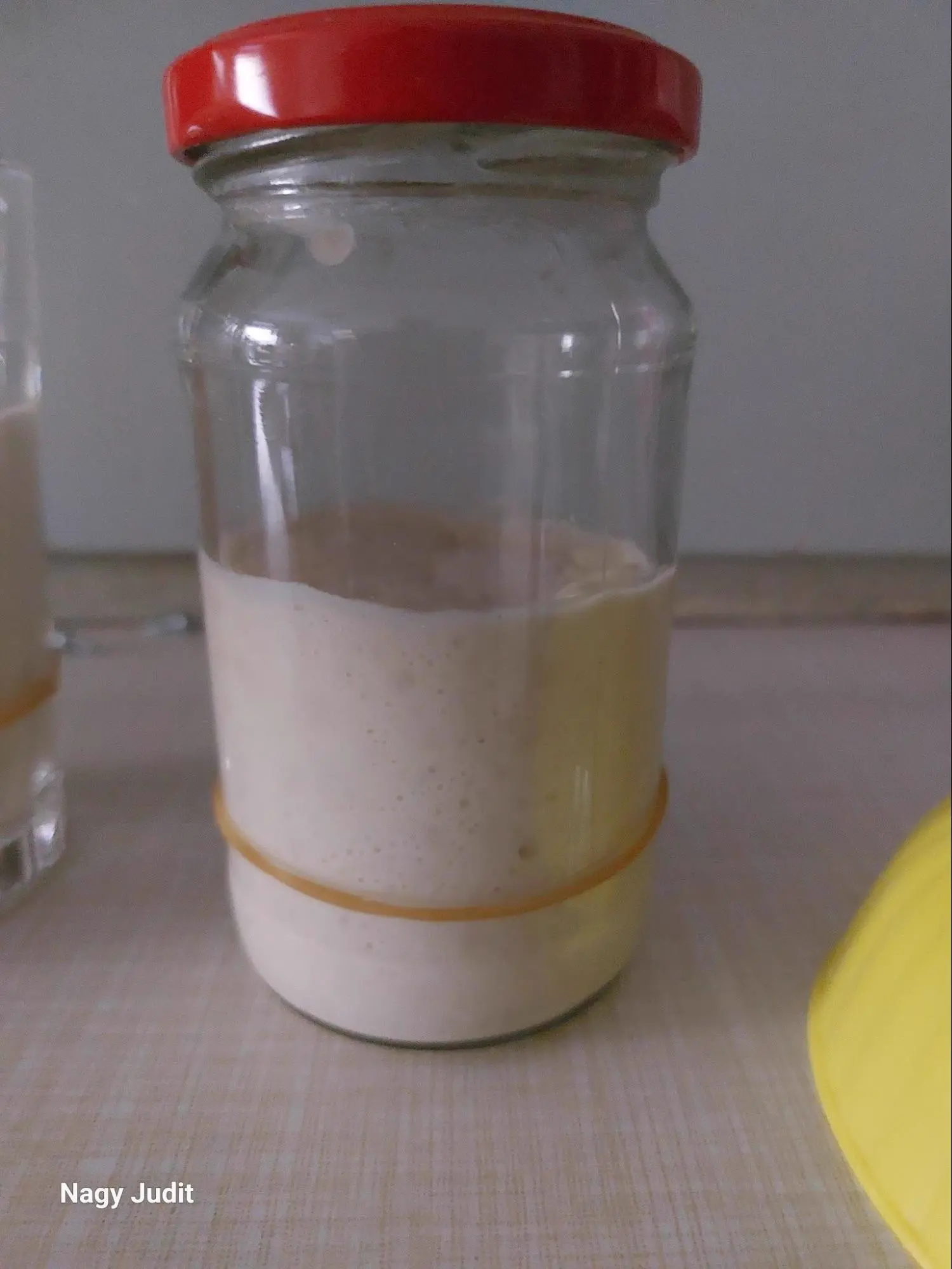 Nem etetem csak összekevertem 2 óra múlva szépen vissza nőtt, de nagyon folyós lett igy vizet kevesebbet adtam neki mivel még nagyon kis fiatalka nem mertem a liszten emelni nehogy visszafogjam.
