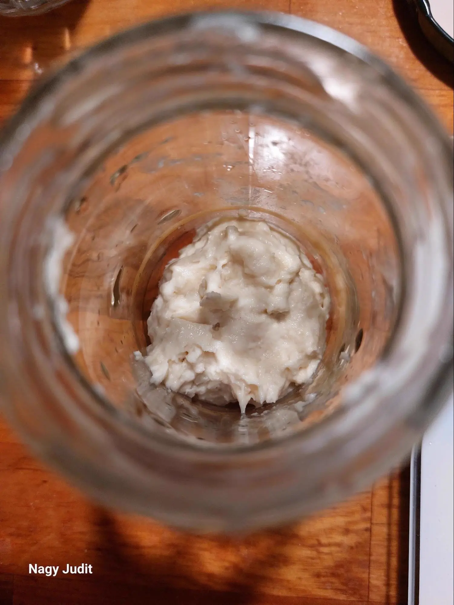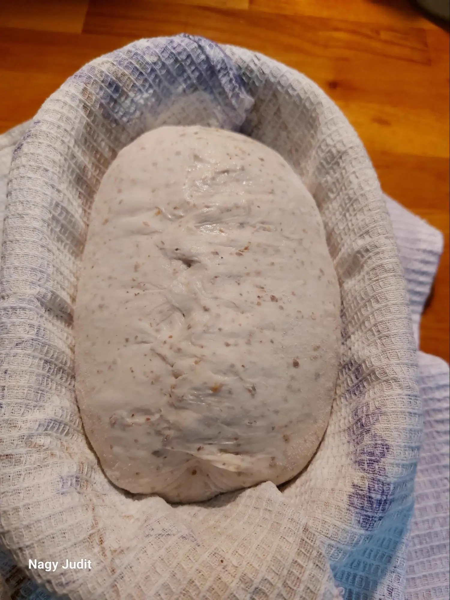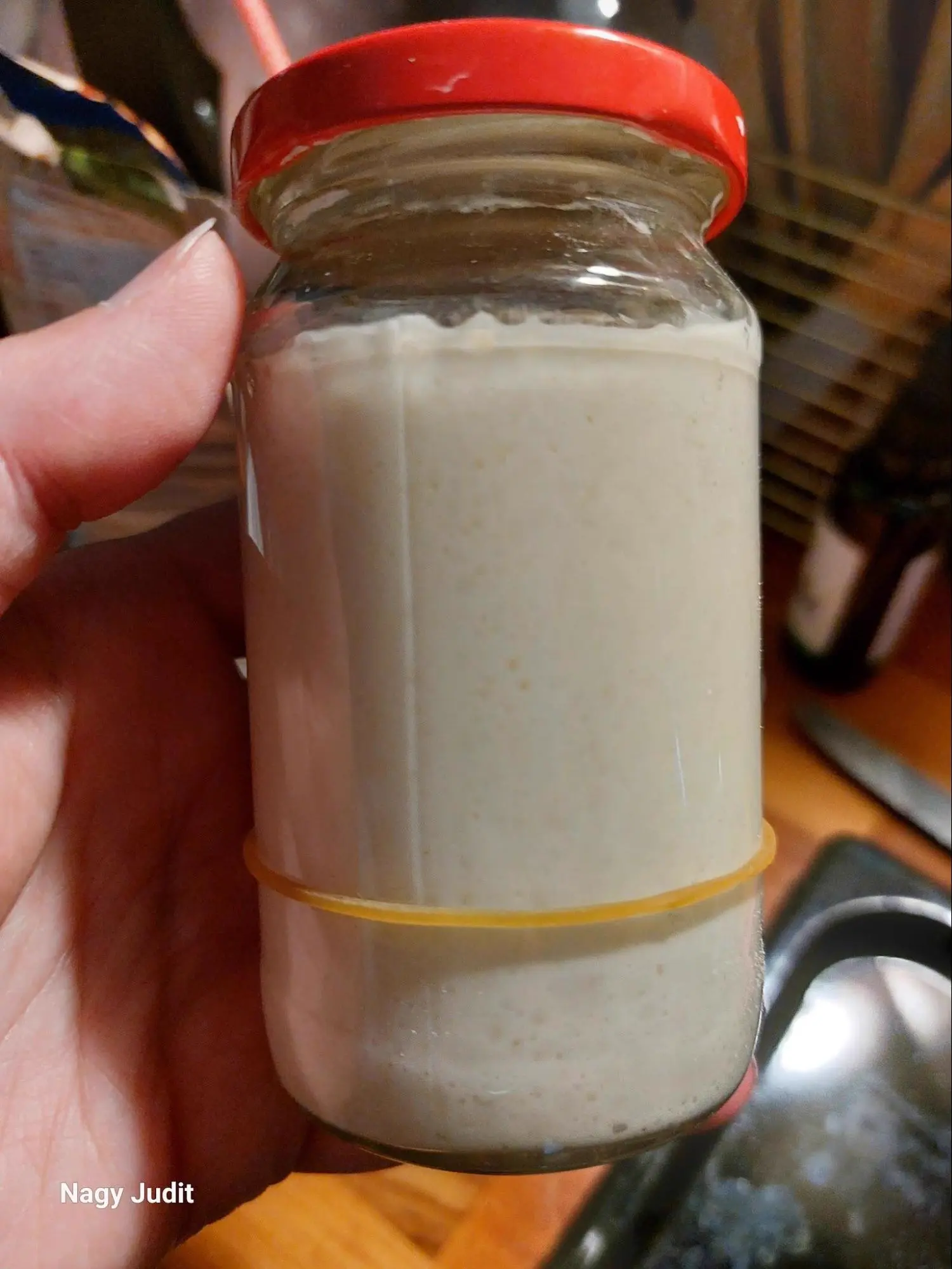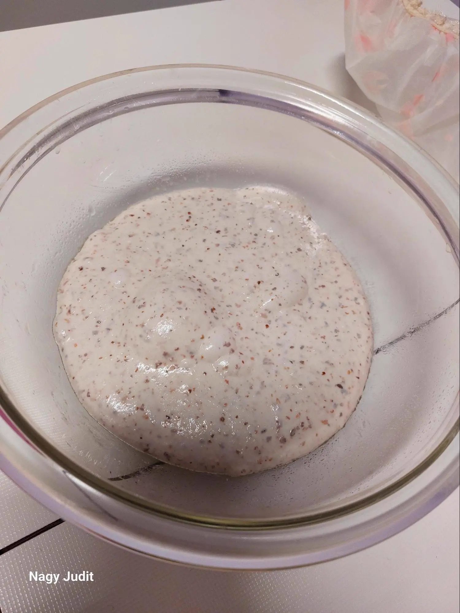 Nem etetem csak összekevertem 2 óra múlva szépen vissza nőtt, de nagyon folyós lett igy vizet kevesebbet adtam neki mivel még nagyon kis fiatalka nem mertem a liszten emelni nehogy visszafogjam.