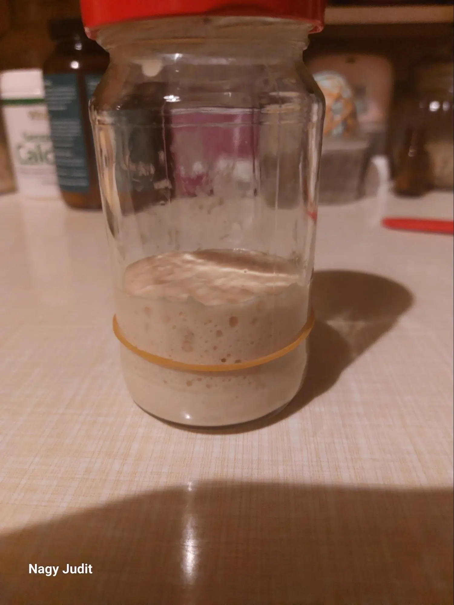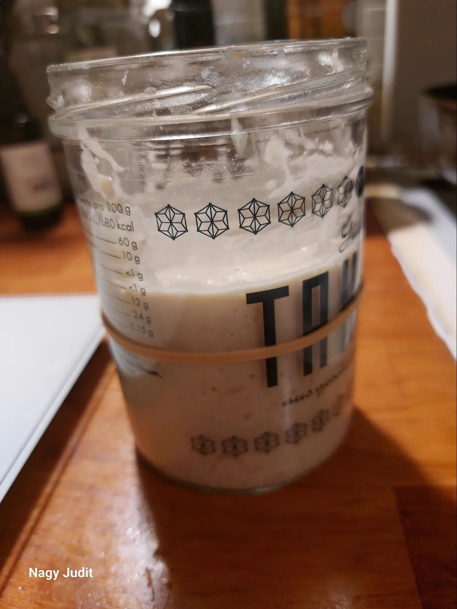 Estére is tele lett az üveg és végre látszik a szálasodás is. Lassan el lehet kezdeni vele a sütögetést. Ha reggelre sikerül megzabolázni akkor az etetésből maradt kovásszal kezdek egy kicsi Tartine kenyeret.