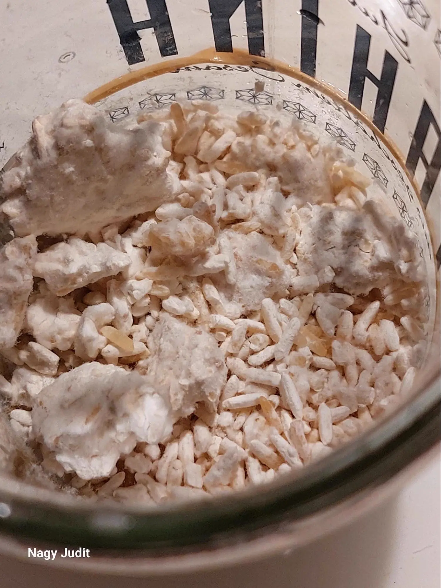 Reggelre meg 3x-ták a térfogatukat. Még nem szálasak inkább kissé ragacsosak. Lassan eltűnnek belőlük a rizs szemek. Ízük már kissé savanykás, de még ott az édes is.