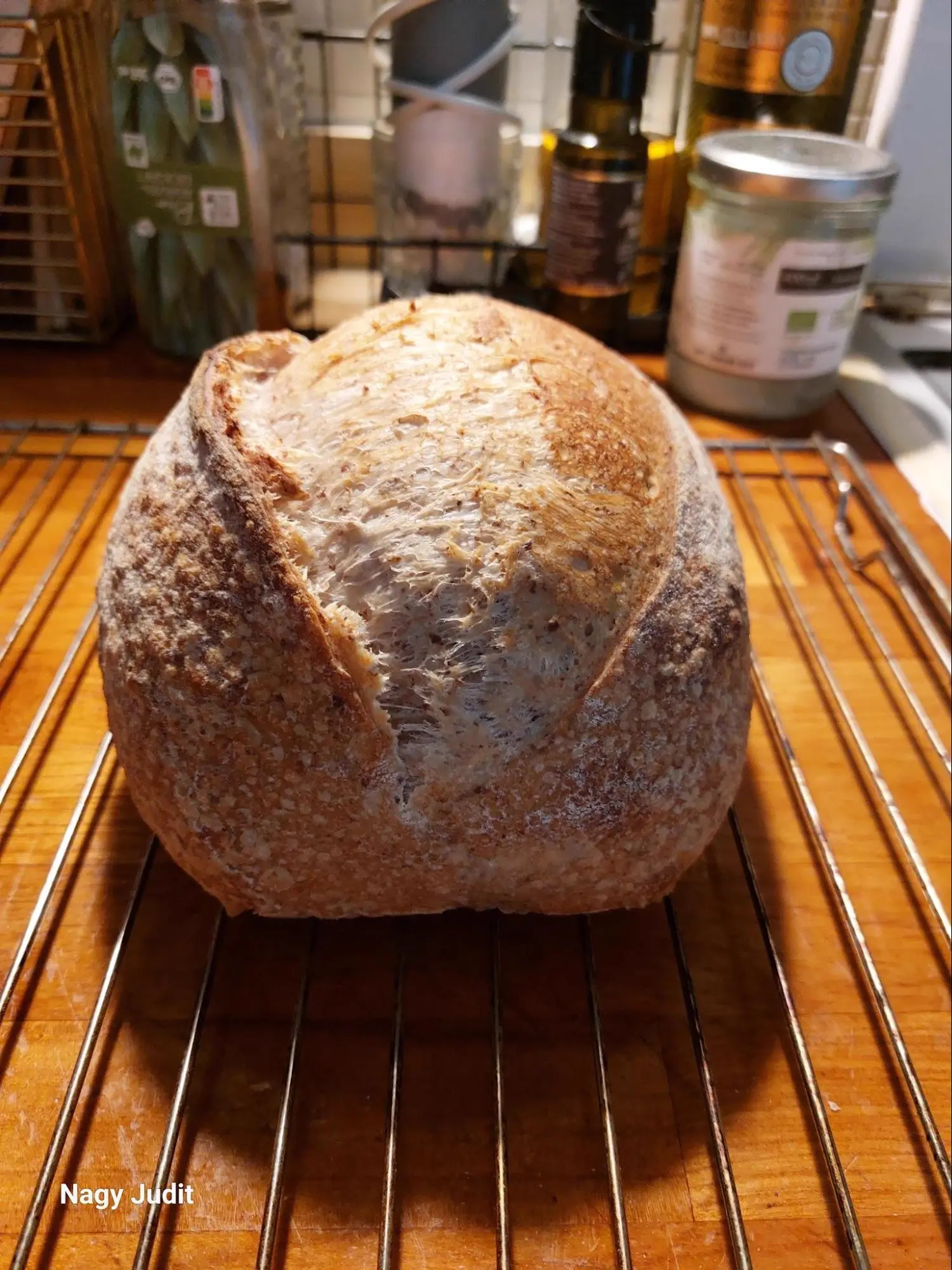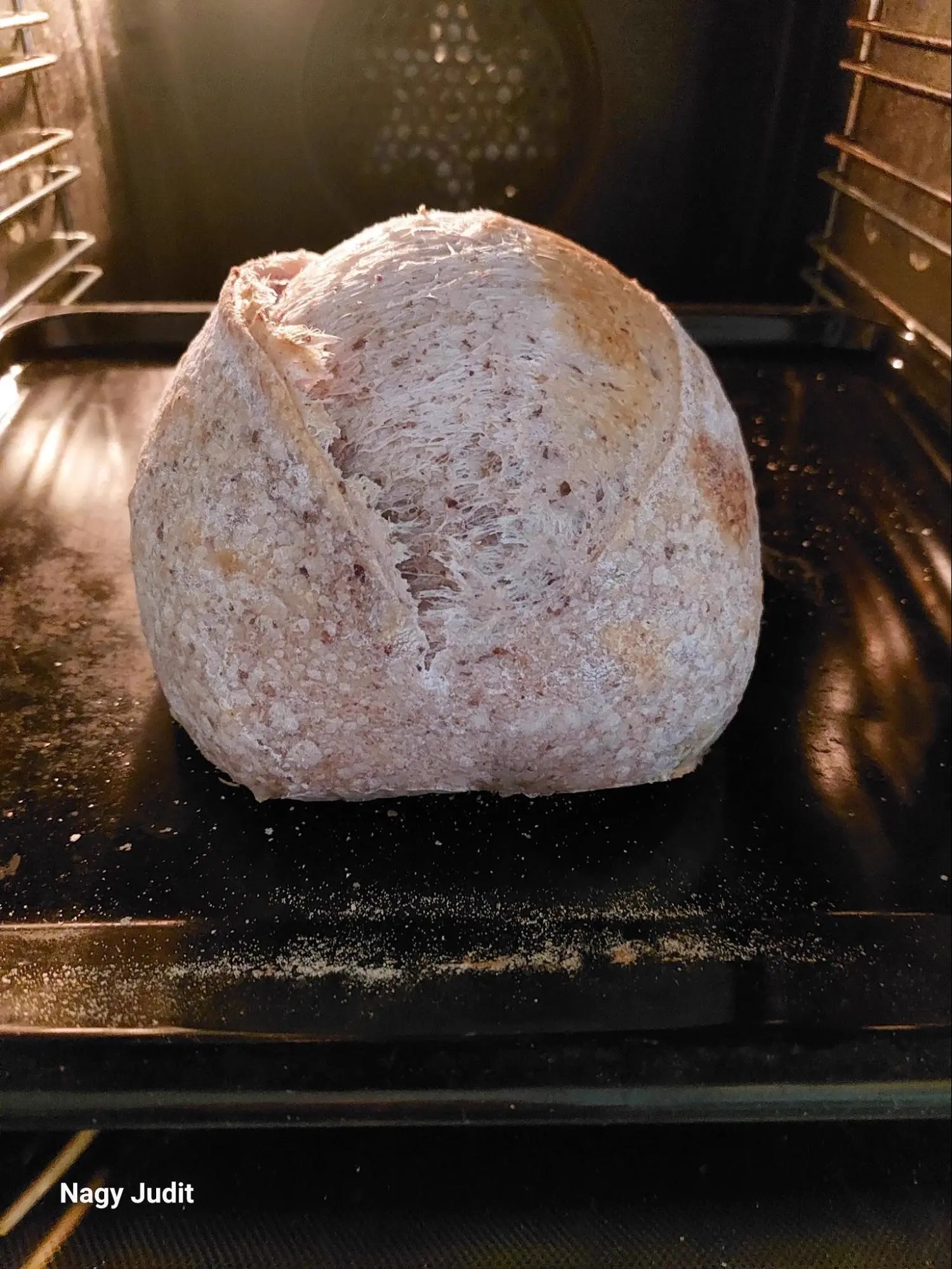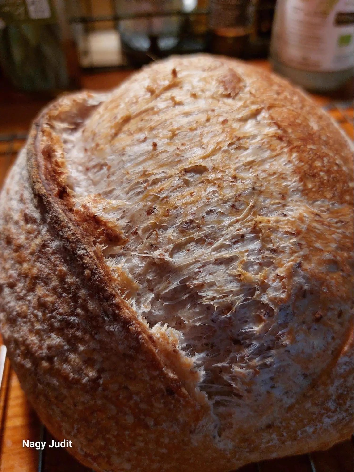 Nagyon elégedett voltam vele, csodásan dolgozott végig a tészta. A nagy lyuk az én hibám mert túl finoman formáztam, de a szerkezete csodás lett.