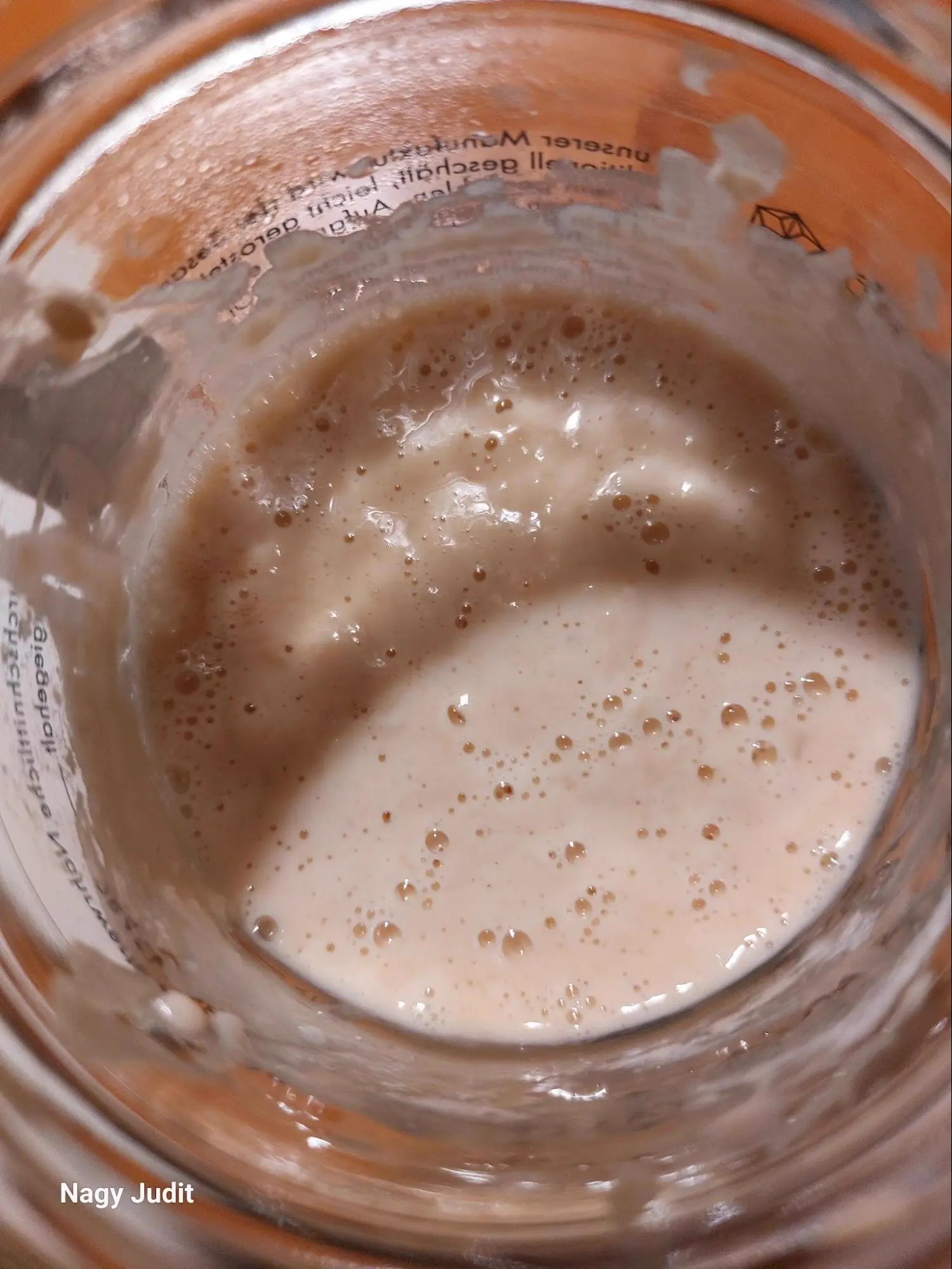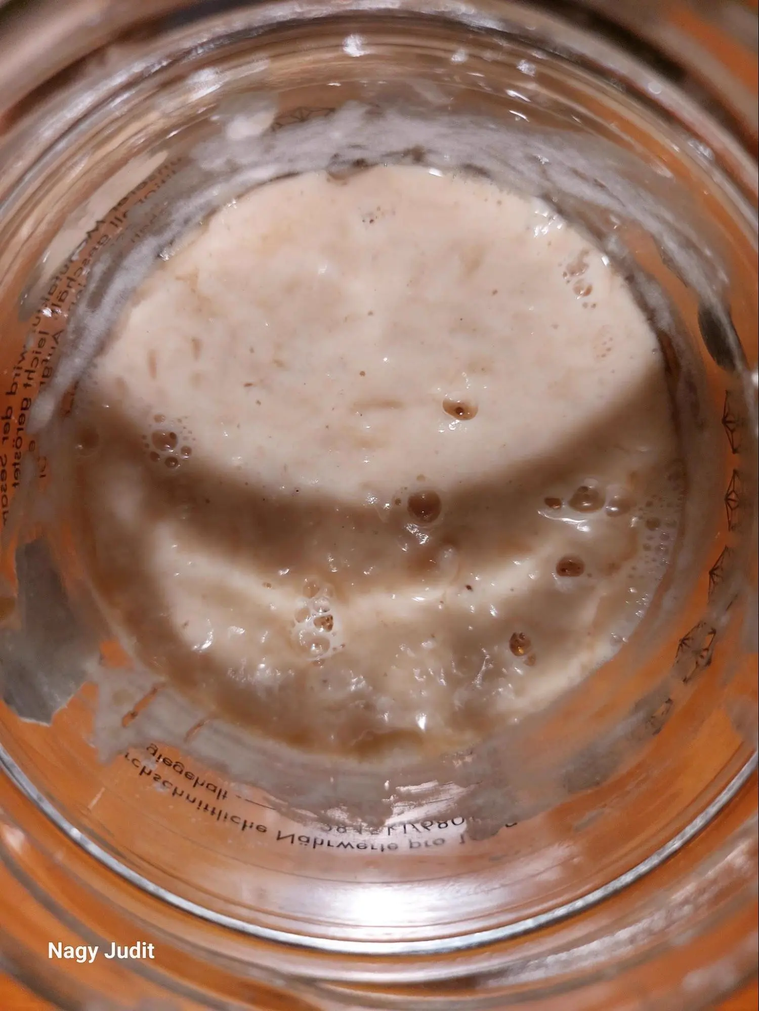 Nekem még volt némi munkám így csak 2 óra múlva tudtam etetni. Csupa hab volt az egész az üvegben alig maradt annyi hogy tudjak belőle etetni. Ilyet még soha nem tapasztaltam. Dagasztani még nem akartam vele mert még nem alakult ki benne a megfelelő flóra.