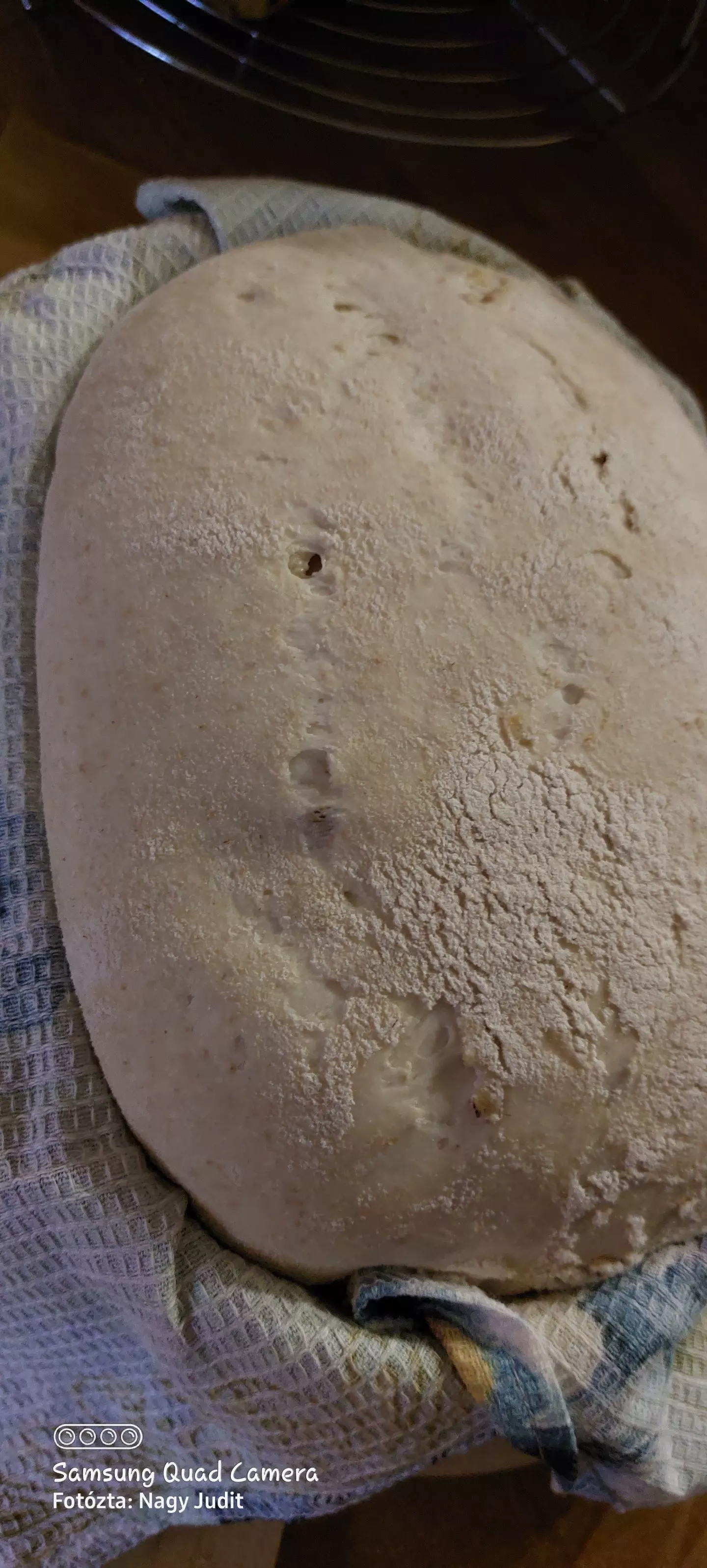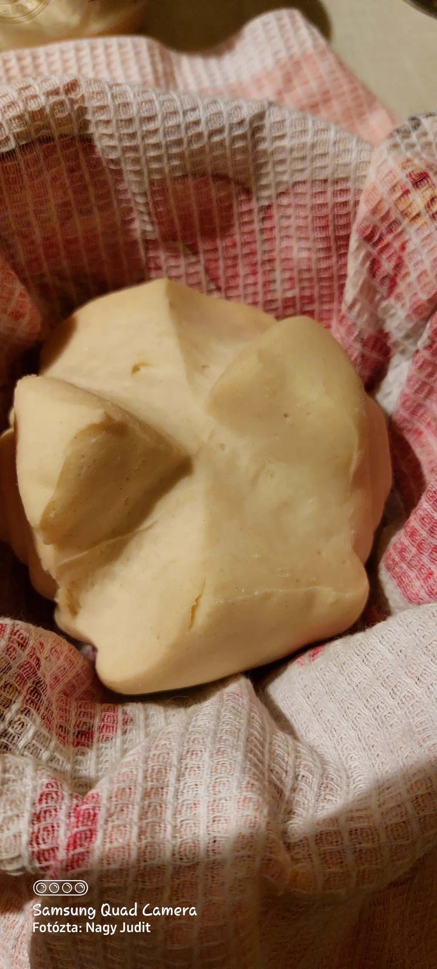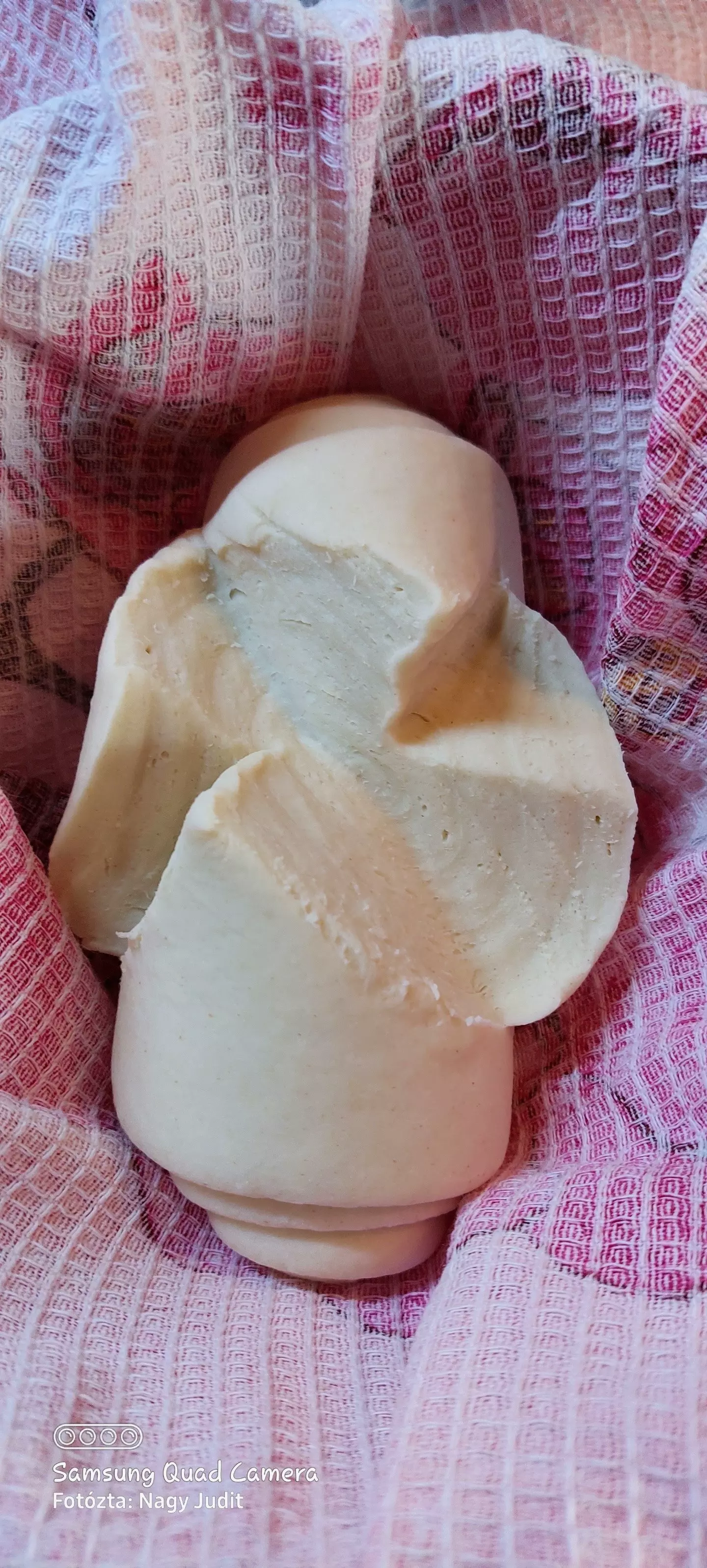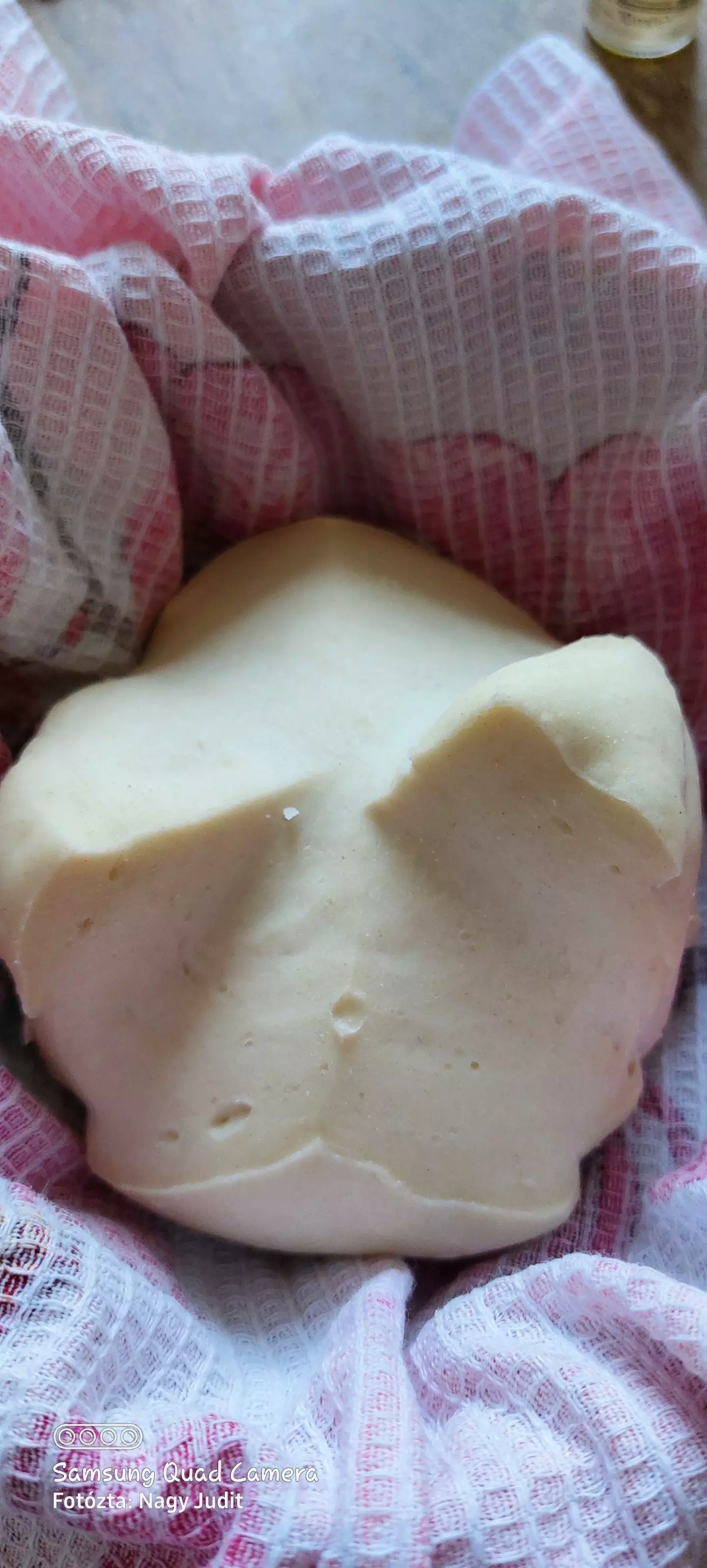 Ugyan ugy mint eddig annyi változással hogy a teteje megszárad és alóla kell a szivéből kivenni az eteni kivánt mennyiséget. Ahogy sa jalapját levettem és szétvágtam egy gyönyörű lyukacsos belső fogadott. 3 óra mulva ment a hűtőbe máshogy nem boldogultam vele. Mire a hűtőbe került márvszépen megnőtt, de óránként meglestem a hűtőbe is és csak nőtt meg nőtt ugy hogy megnyugodtam jóhelye lesz a hidegben. Így megint 48 óra mulva etettem.