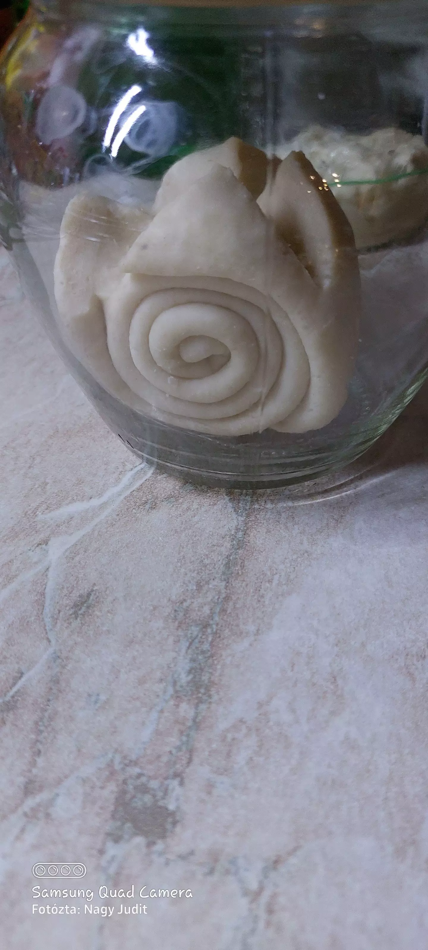 Elkeverjük ez egy lágy massza lesz. Az üvegre csak rátesszük a tetőt nem zárjuk le és meleg helyre tesszük 48 órára. Nem igazán nől az illatán lehet érezni hogy valami törtènik az üvegben meg a masszába lehet látni apró bubikat. Ezért összekevertem a kis kezdeményünket, a bent lévő kolónia jobb eloszlásának érdekében.