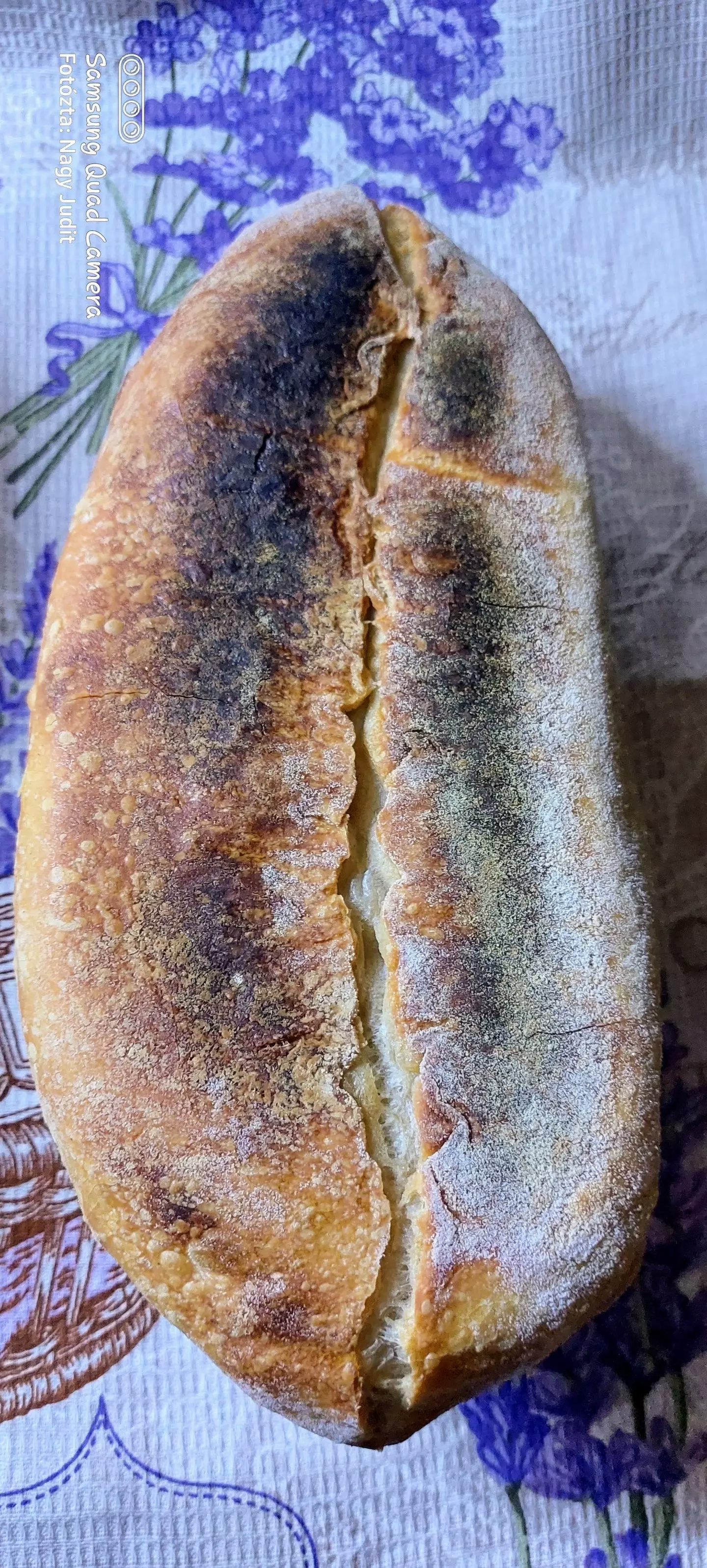 500 g liszt ( 190g királybúza 100 as, 200 g bl 80 as celli, 110 g bánkuti 100 as ), 370 g víz 130 g madre, 13 g só + 20 g víz.