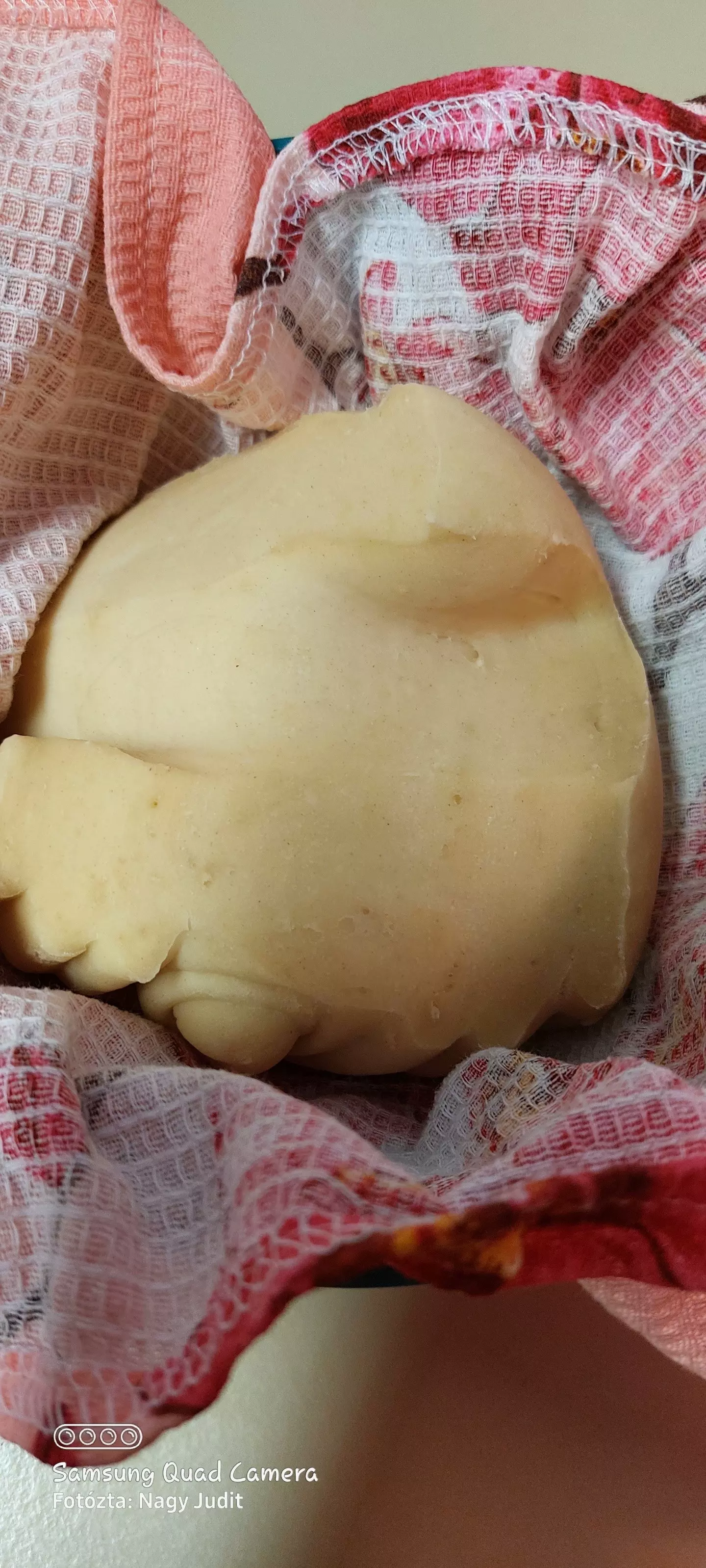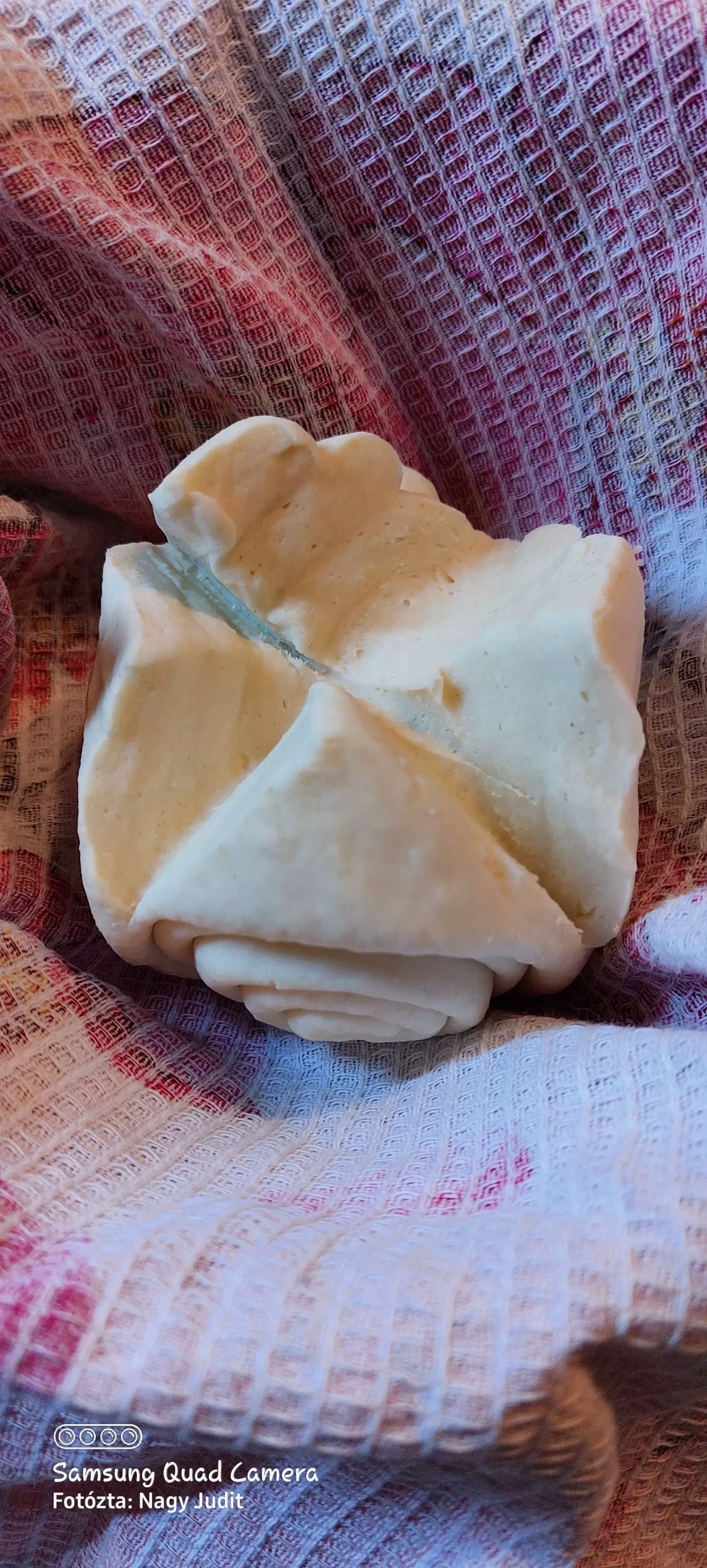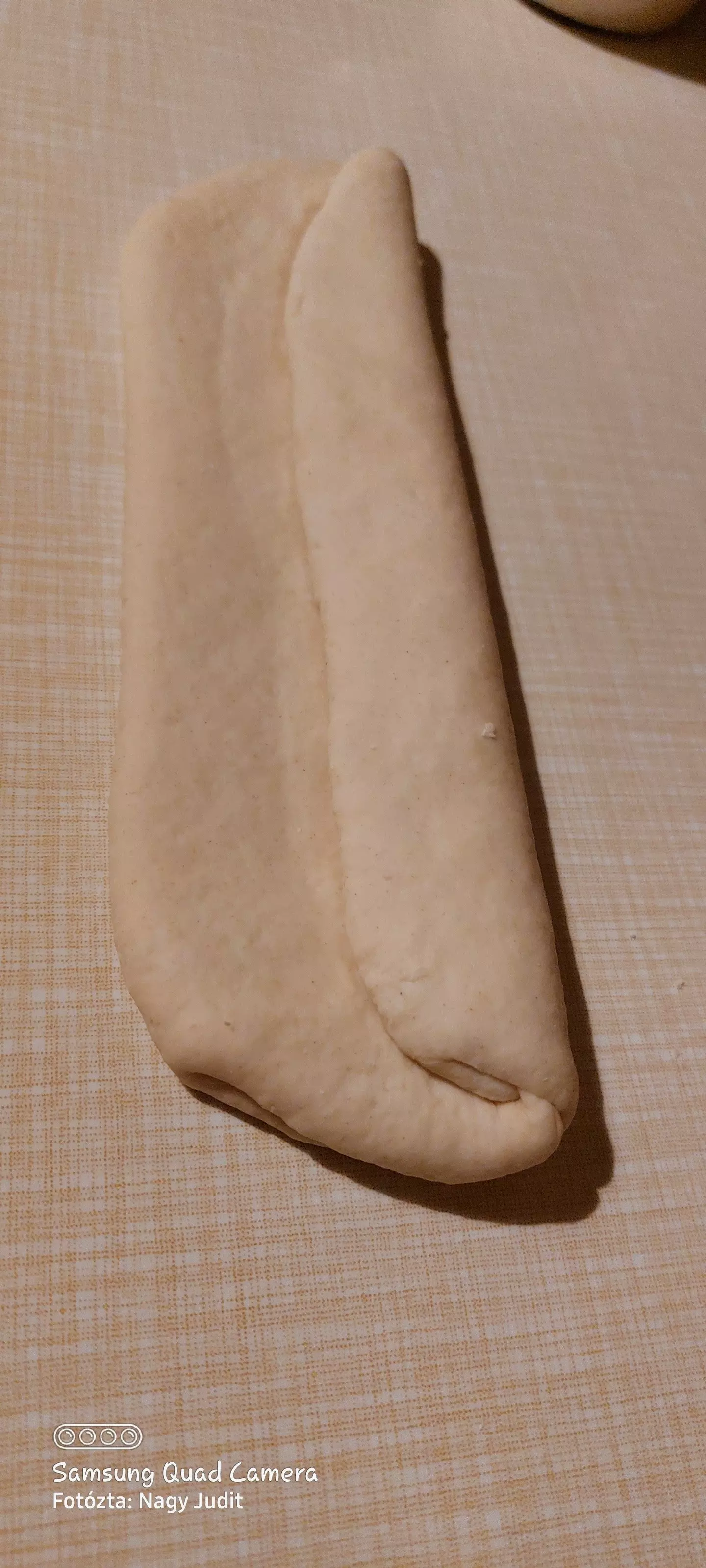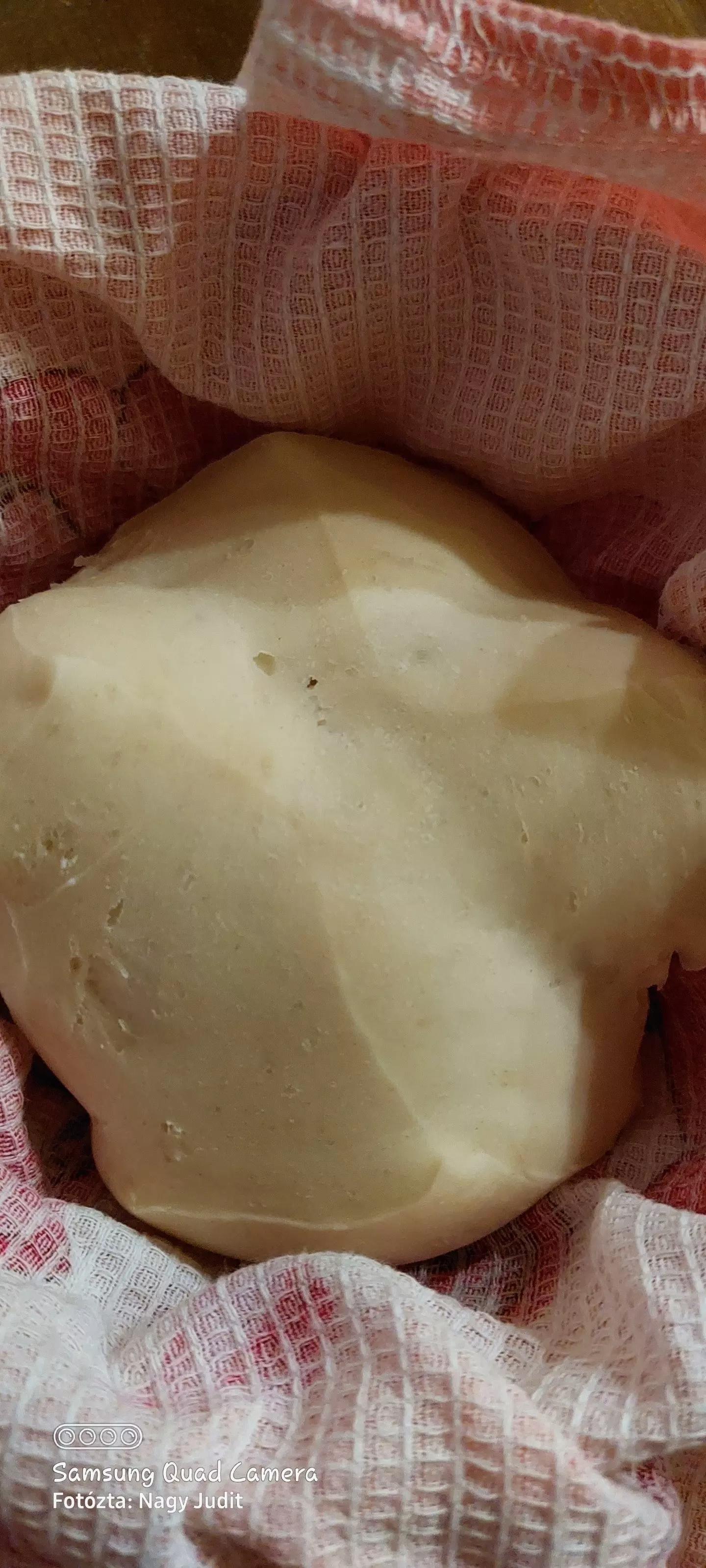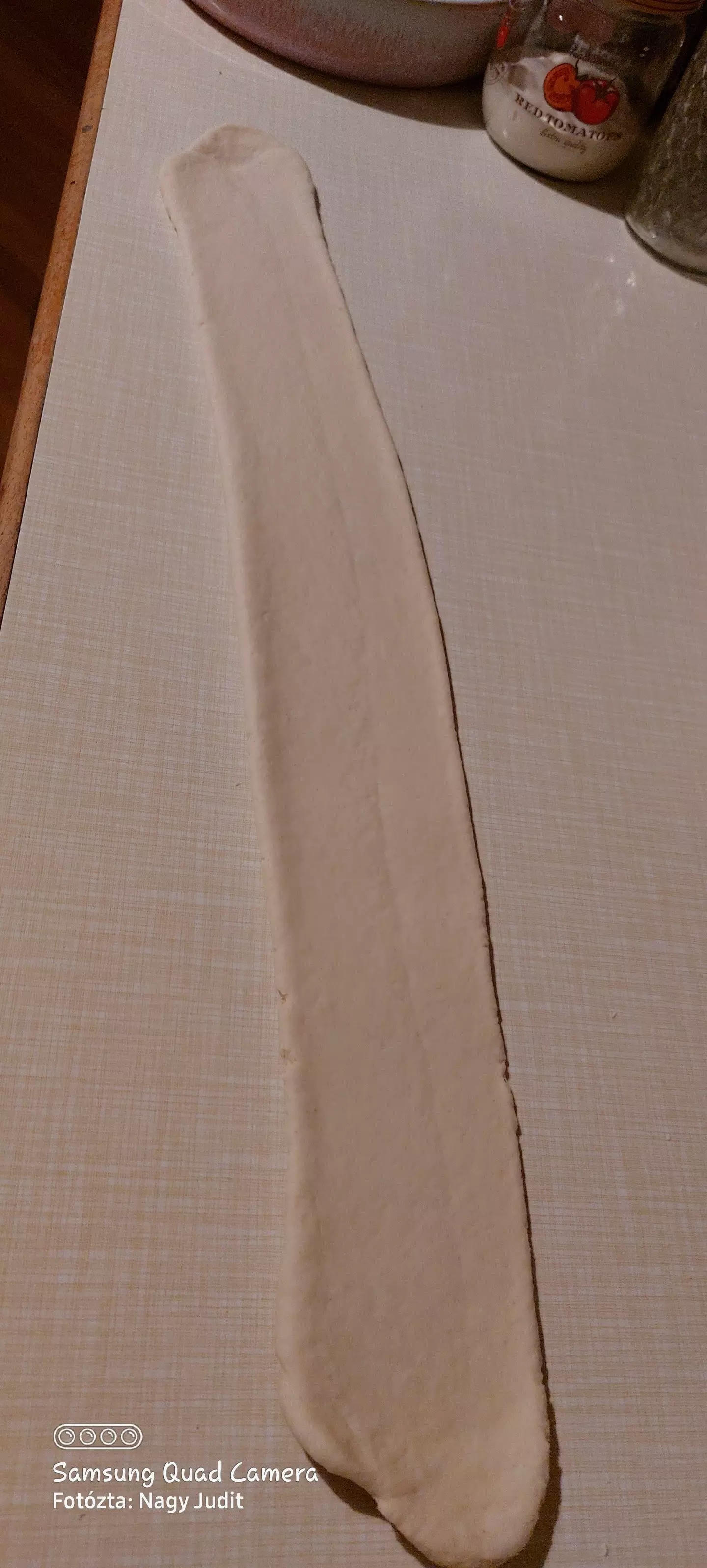Ez a végső nyujtás ezután tekerem fel és vágom be majd megy a tálba konyharuhába csomagolva.