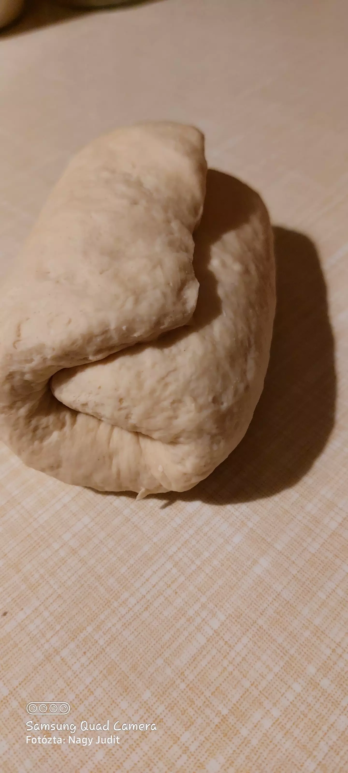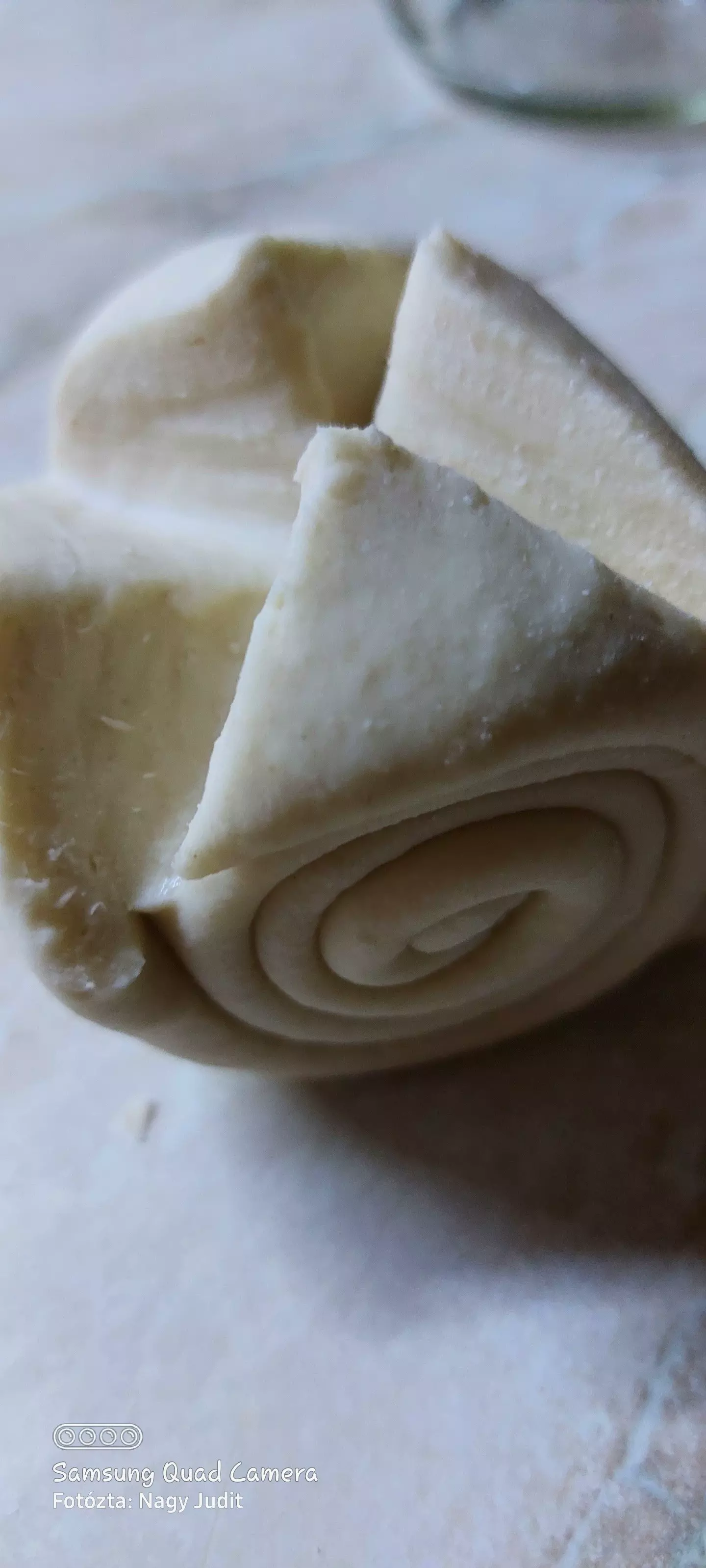 Ezt a hajtást nyujtást 3x ismétlem mire szép sima lesz a tészta.
